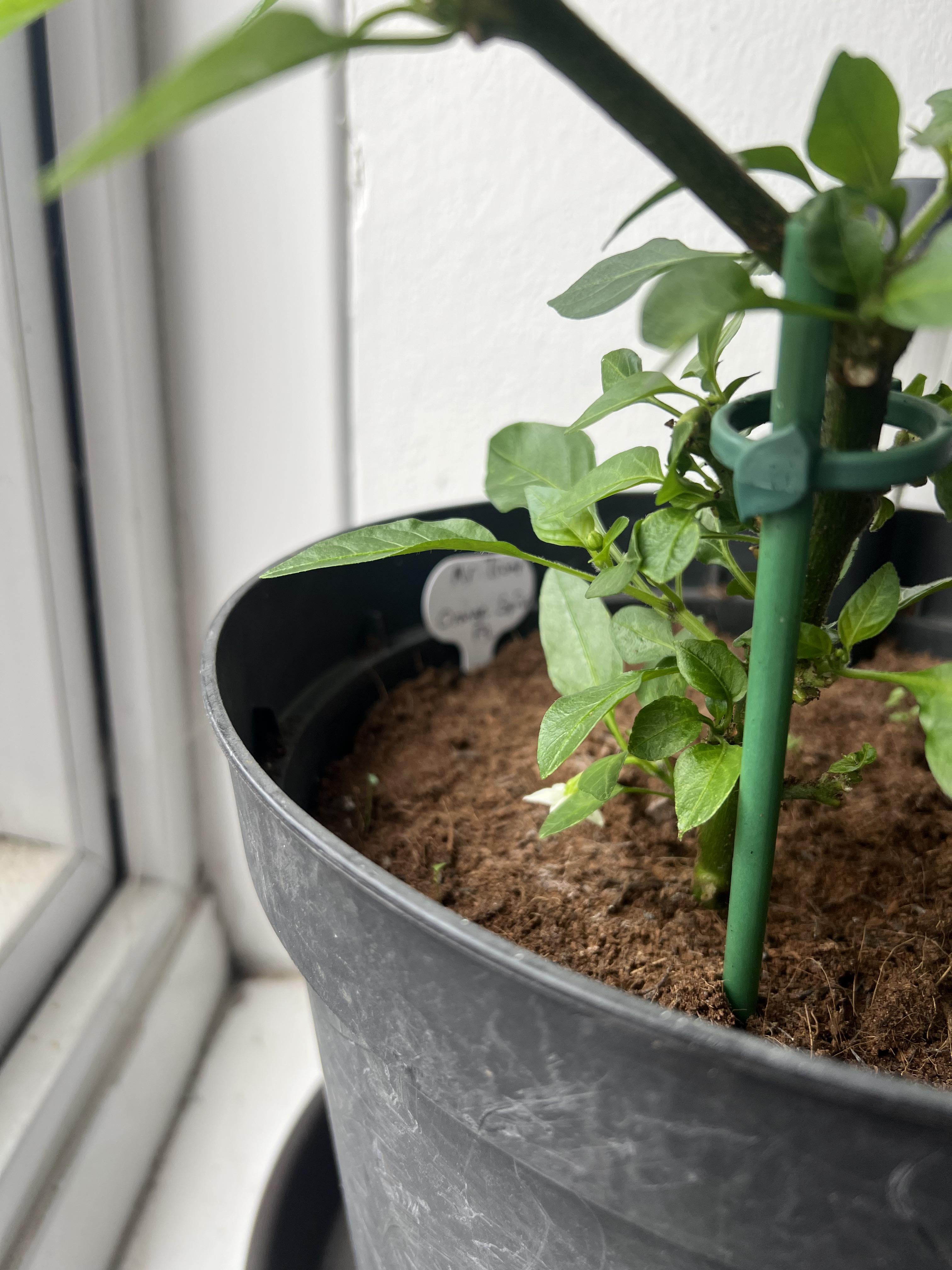 First flowers coming through on over wintered pepper plant, 1/3 survived, should have my first orange chilli peppers in 6 weeks, just need to give the plant a light daily shake…