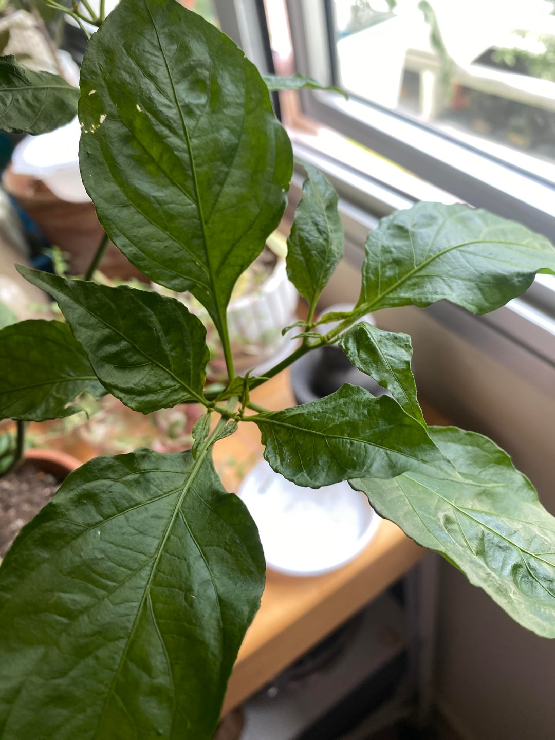 All my peppers look like this, they’re all at varying life stages, I thought it was a calcium problem, so I started supplementing them with calcium nitrate for awhile, but it didn’t do anything, so I stopped, then I thought it was a potassium problem, so I started them on an 15-10-22 + 2.5MgO+TE slow release immunity booster a few months ago,, and it isn’t doing anything, so now I’m wondering if it’s an acidity problem because I’m using a peat moss based potting mix, so a few weeks ago I sprinkled some dolomite lime on the top and watered it in and I’m still not seeing any difference. There are no pests, they get plenty of direct sunlight, they get watered regularly, and all the new leaves are coming up warped and eventually fall off.