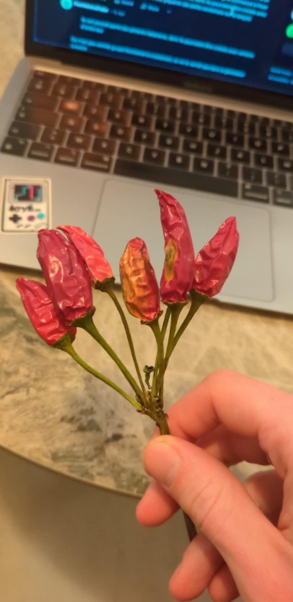 Hello,We gave me these chili peppers, does anyone know which variety it could be ?They are quiet spicy, that's all I know ^^by Funny_Top_3887 Hot peppersPeppersSpicy Stuffsweet peppers 1 Comment KateBlankett 9 hours ago Mirasol peppers have this growth habit.Edit: I have no idea why there are so few photos of actual Mirasol peppers online, but this is the kind I’m talking about: [NuMex Mirasol](https://chilepepperinstitute.ecwid.com/NuMex-Mirasol-p616732248)Write A CommentYou must be logged in to post a comment.
