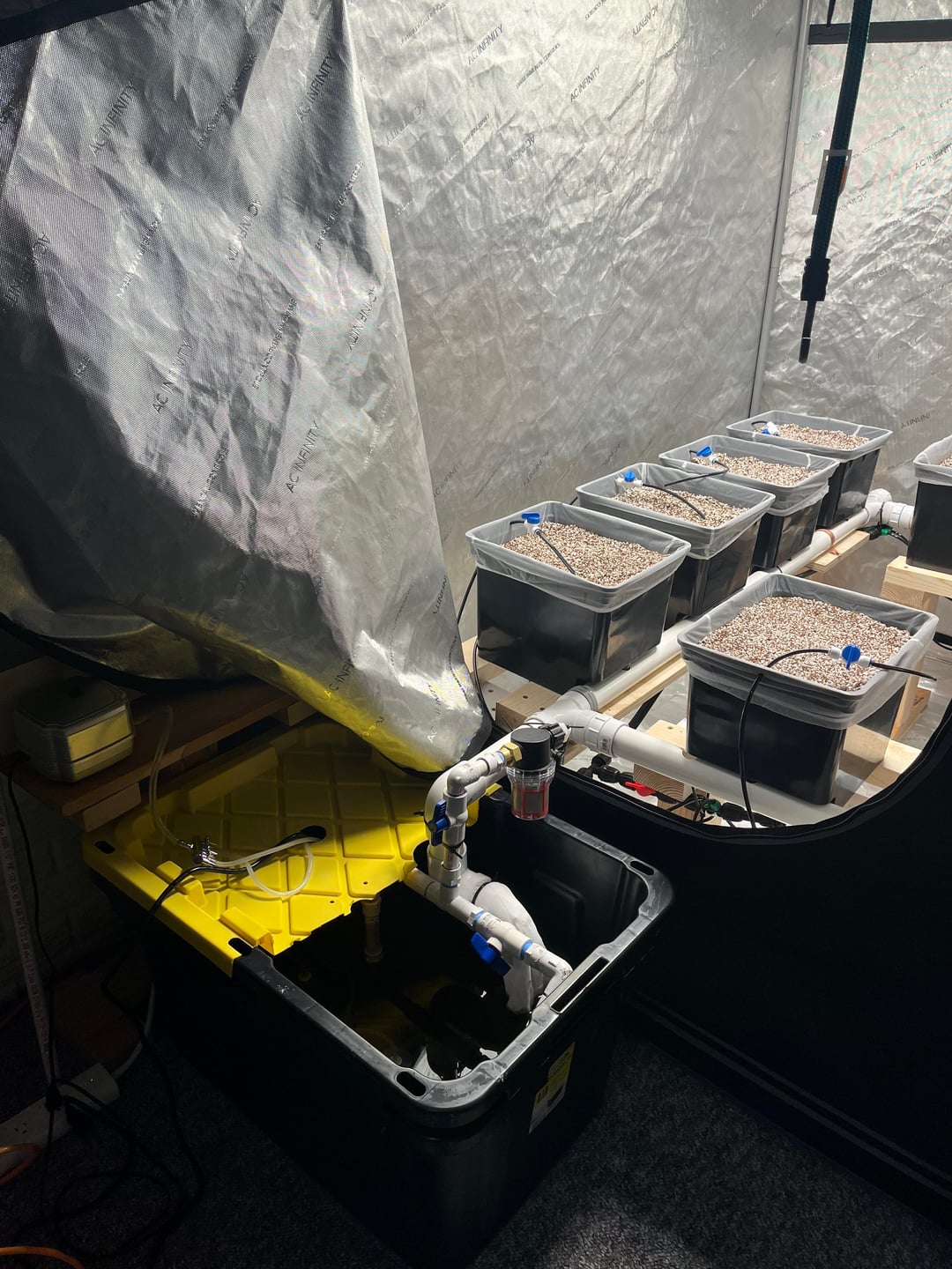 Just finished setting up my Dutch buckets. This is “temporary” set up while I build a 12’x7’ grow room in my basement but my question will remain.