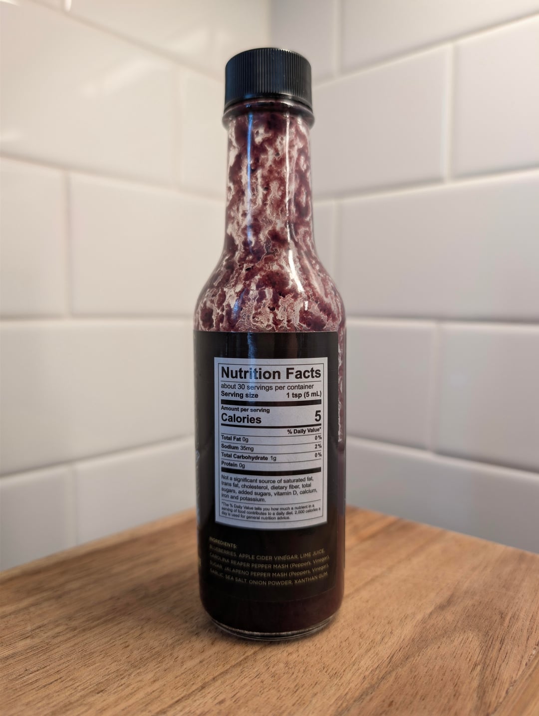 I found this at Publix. Nice natural blueberry sweetness without artificial sugars. More heat than the Bravado brand version of the same concept.