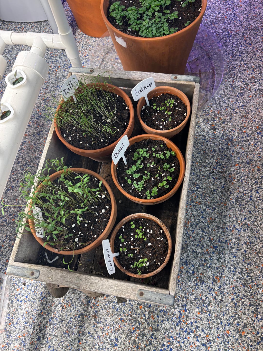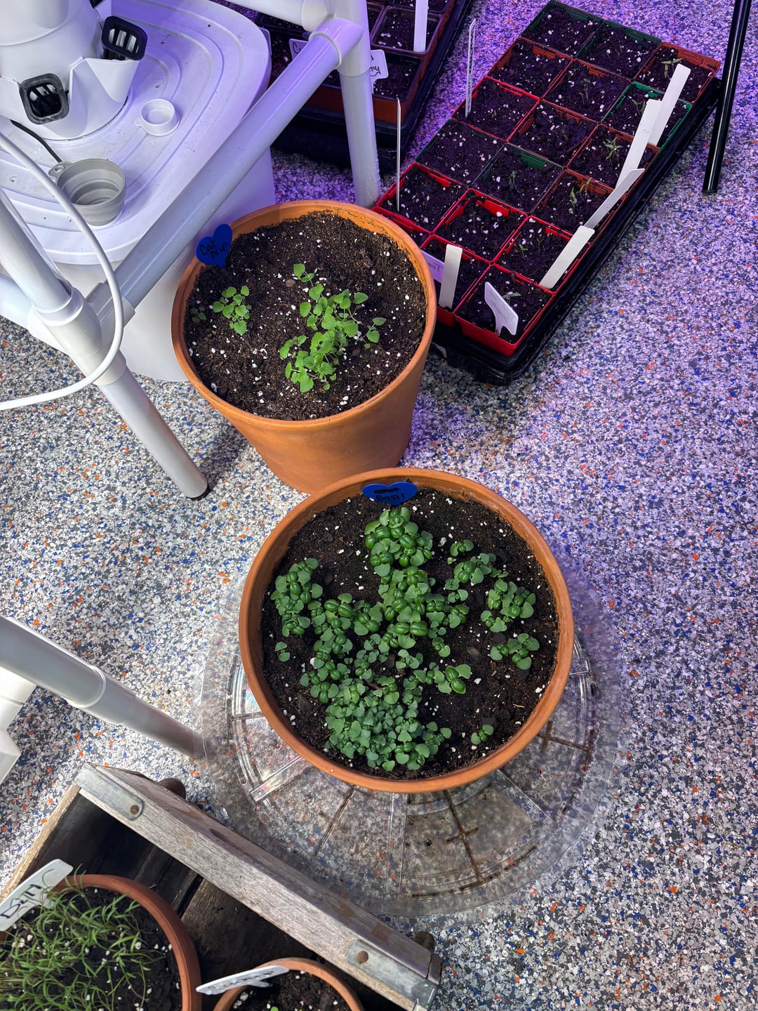 We are up to 409 seedlings potted up into 4" nursery pots. We have around 100 more that need potted up and another 80 in the hydroponic.