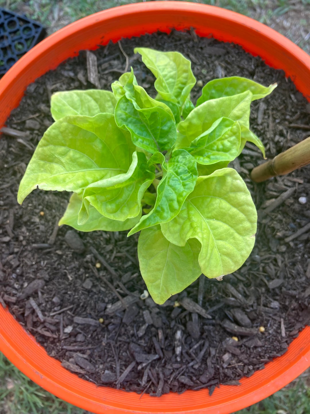 I put it in a larger 25cm pot with premium herb and tomato potting mix about a week ago and it’ll be due for a water in the morning. Small new green growth has appeared.