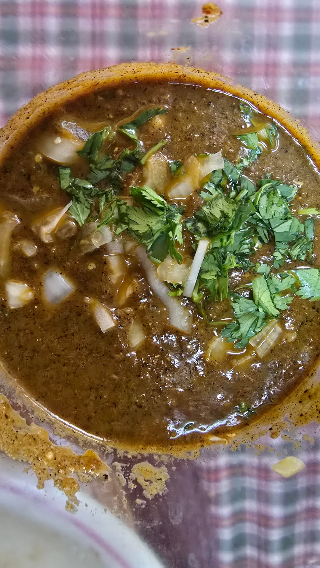 Transfer to a container, add some finely chopped onion & cilantro for garnish and enjoy!