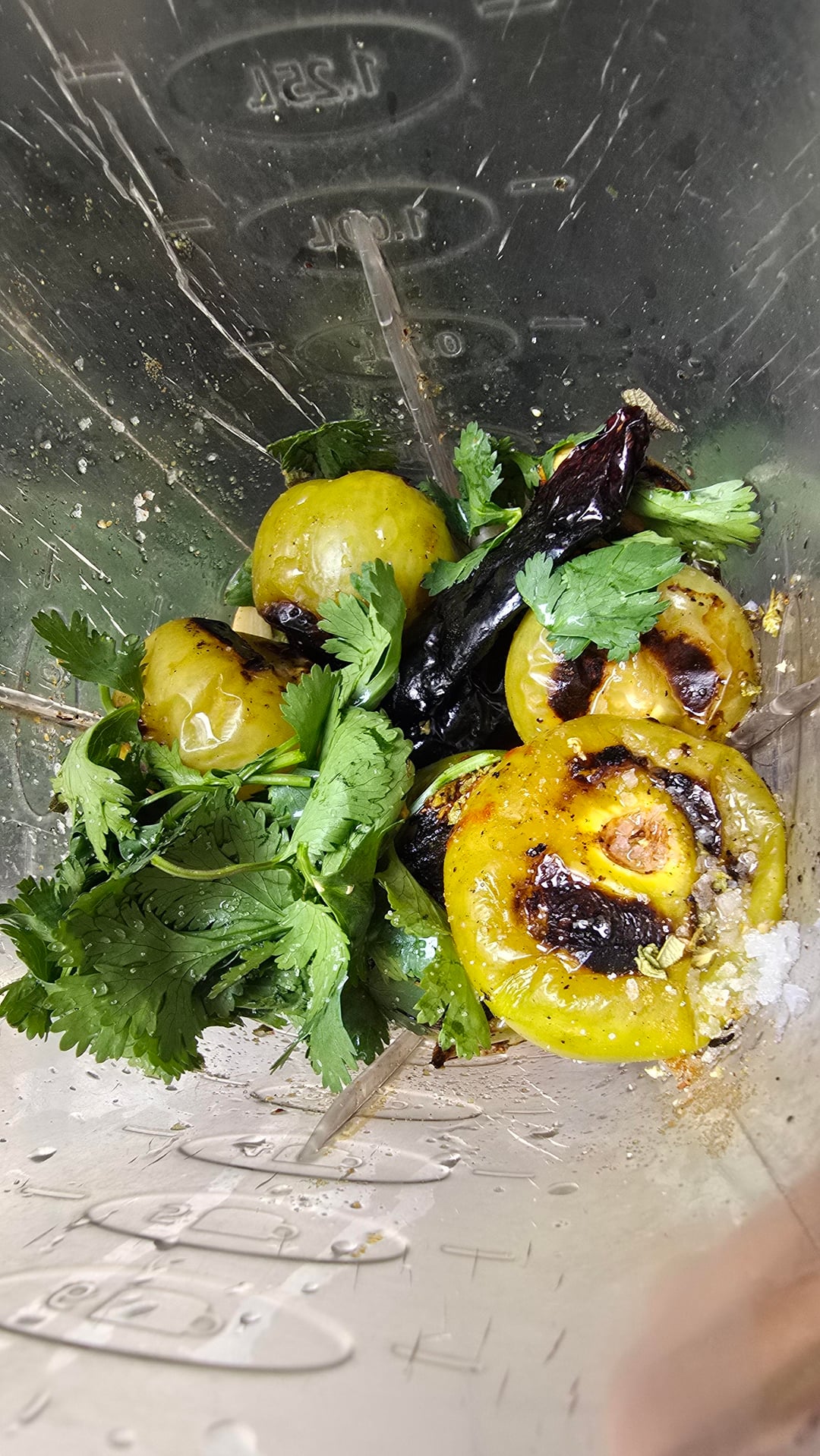 Add the spices with the vinegar, some cilantro and blend, if too thick add more vinegar or some water