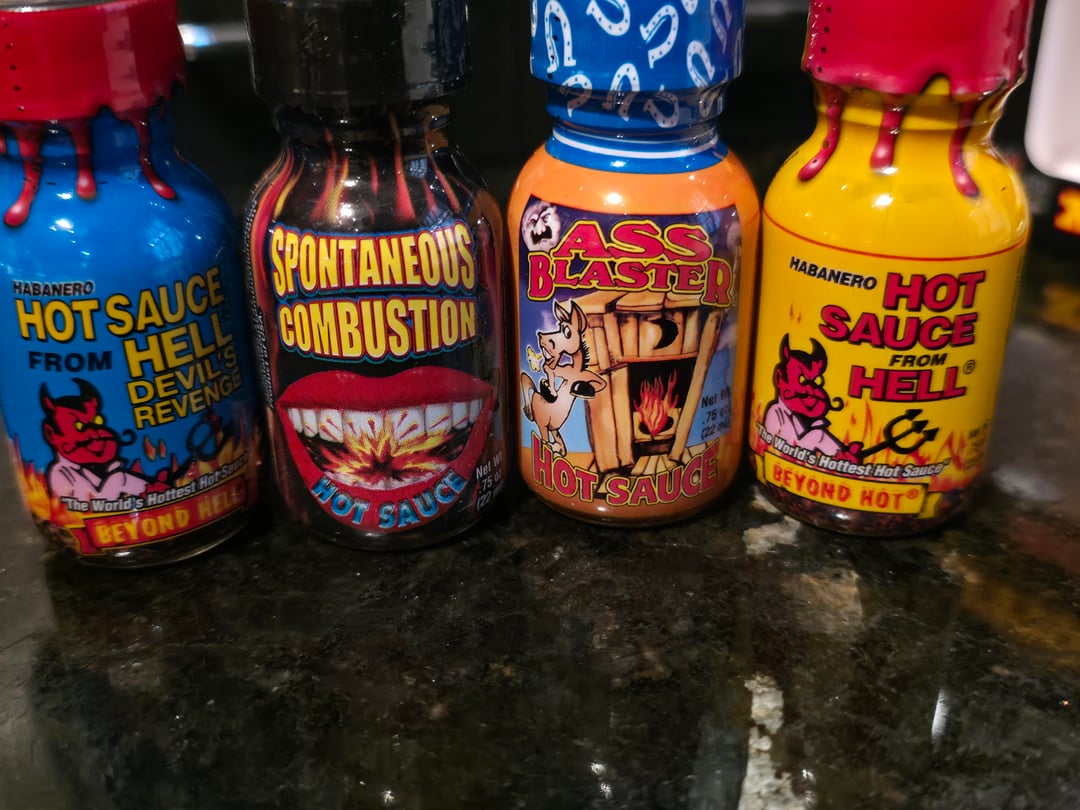 Made by Southwest specialty food Incorporated.by Prudent_Put_2293 hot sauceSauce 5 Comments Prudent_Put_2293 3 hours ago I definitely should have used my better judgement. The heat is there but it does taste like a typical variety pack hot sauce. Maleficent-Touch-67 3 hours ago I can’t with those silly ass names man lmfao, definitely let us know how it goes doctorhino 3 hours ago Got one of these about 10 years ago, there was like one decent sauce in the set. A lot of them tasted odd and were nothing but heat, I agree M2_SLAM_I_Am 3 hours ago I’m gonna go out on a limb and say none of them tasted good ApXv 3 hours ago I remember trying ass blaster about 10 years ago. Very mid flavor if I remember correctly but it had a kickWrite A CommentYou must be logged in to post a comment.