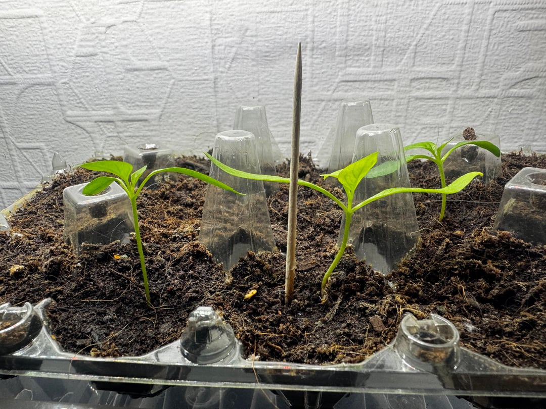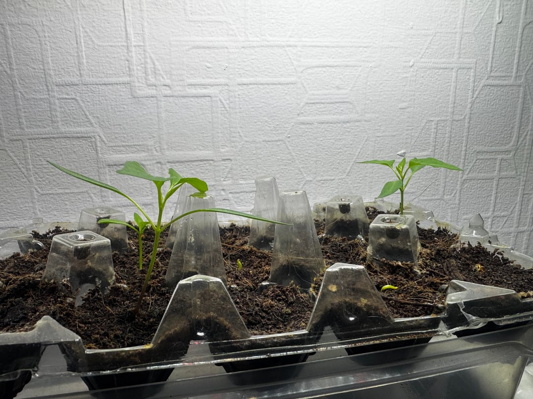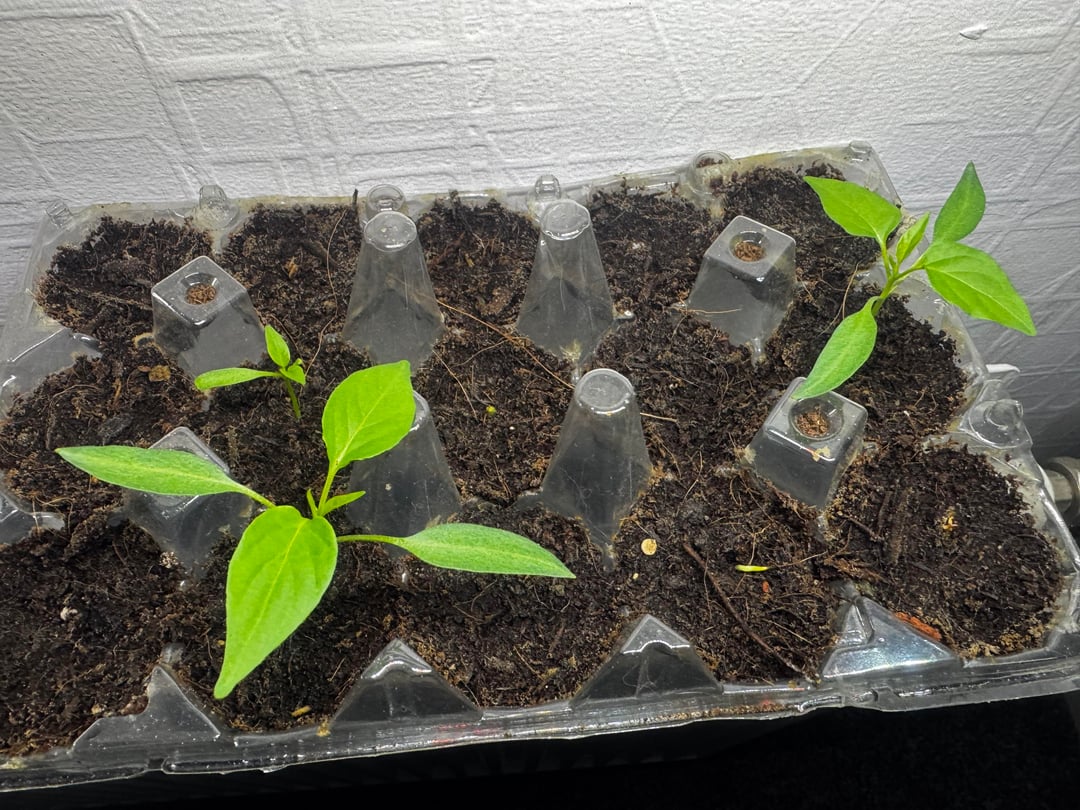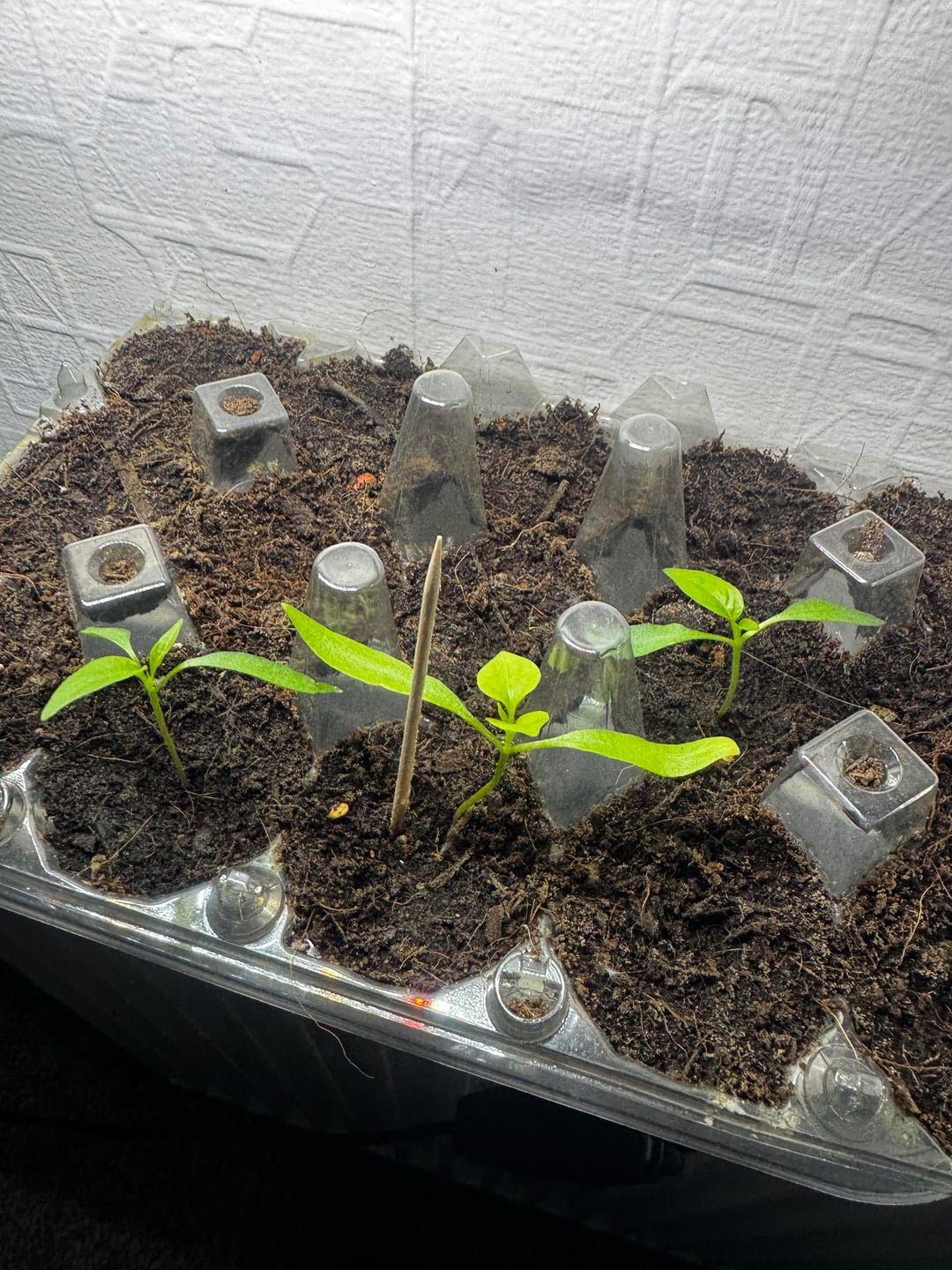 My peppers have been growing for about a month now. I think they are leggy, and it is time to repot. Total beginner at growing plants of any kind. Any thoughts would be appreciated!