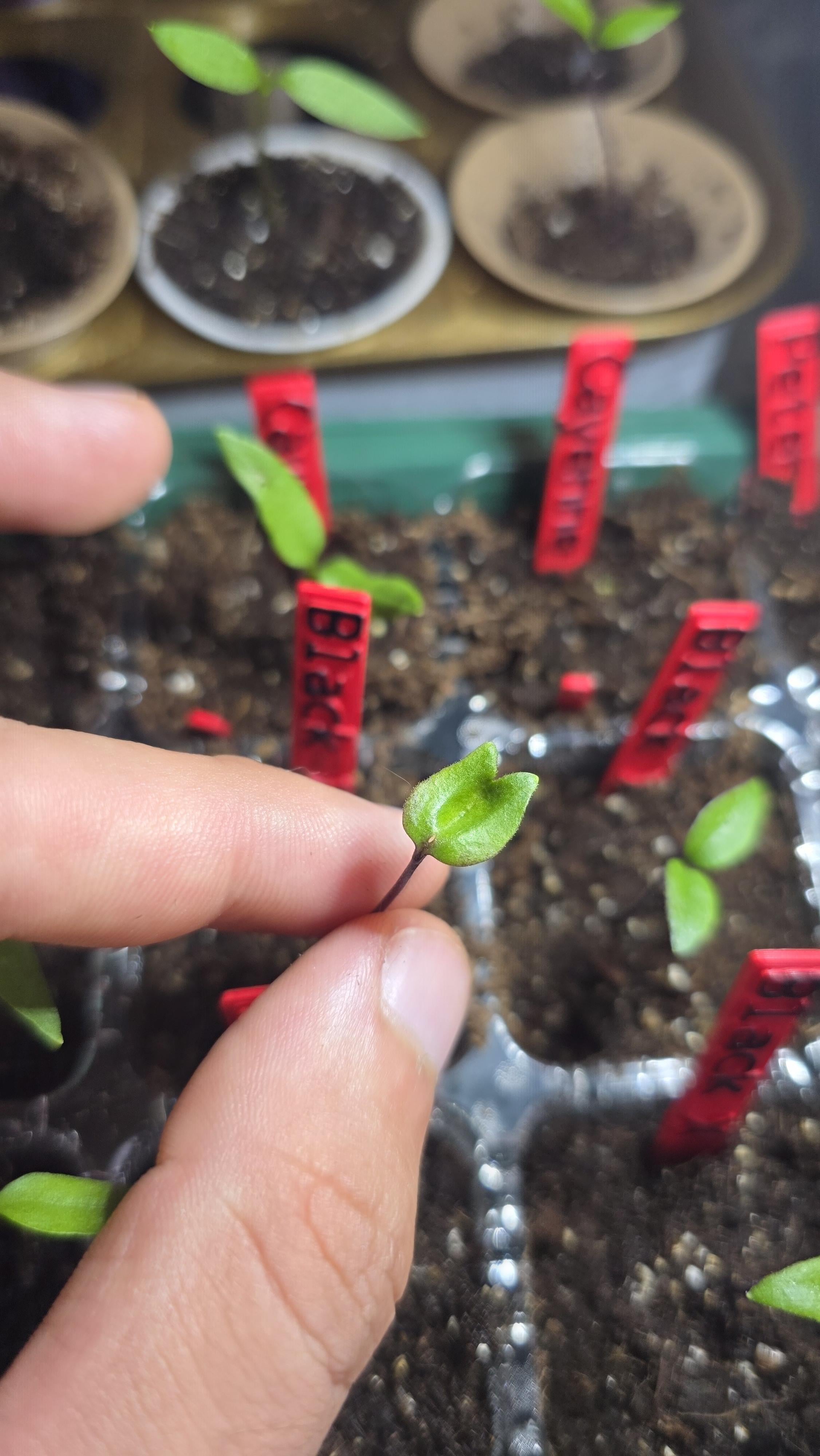 One of my Black Panther pepper seedlings looks odd compared to the others.