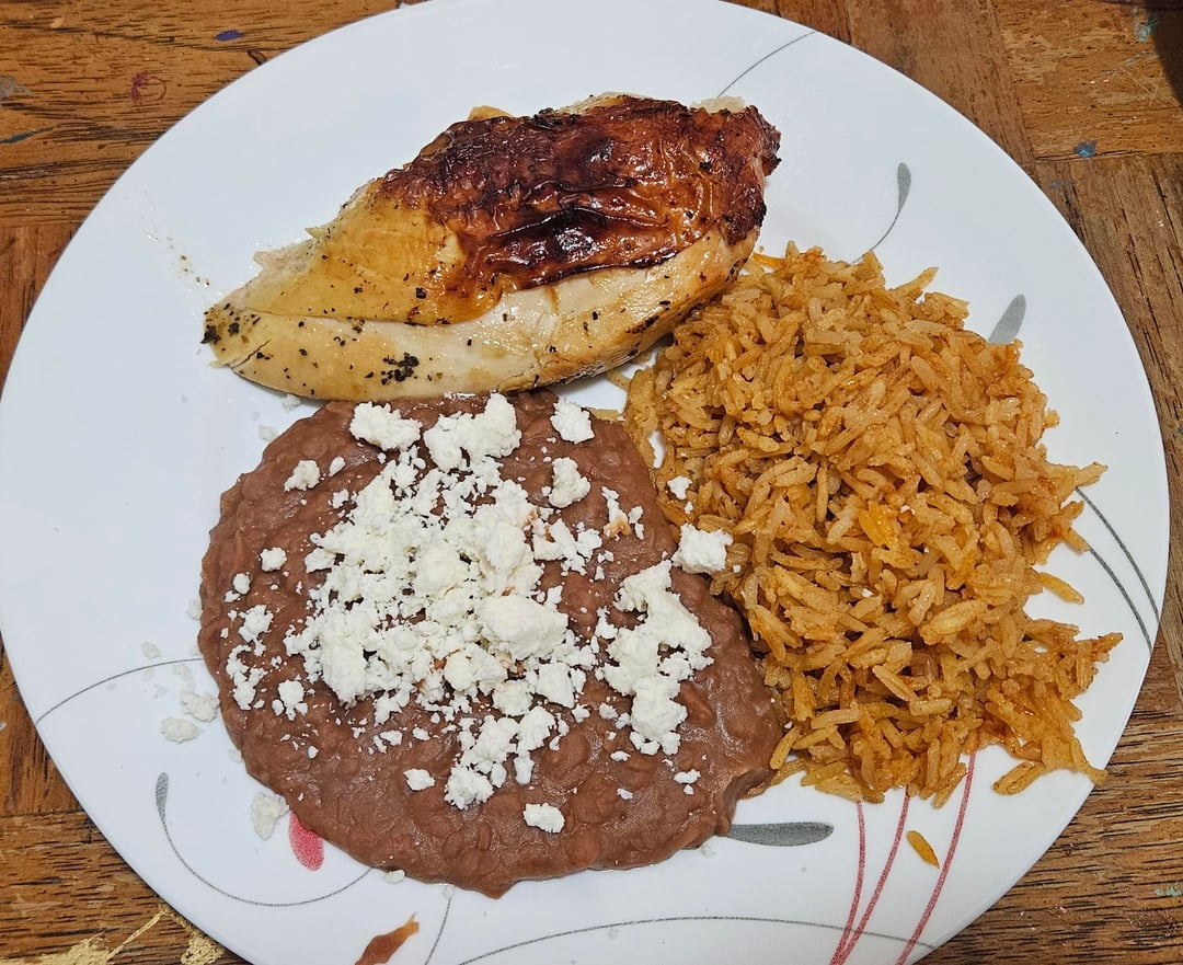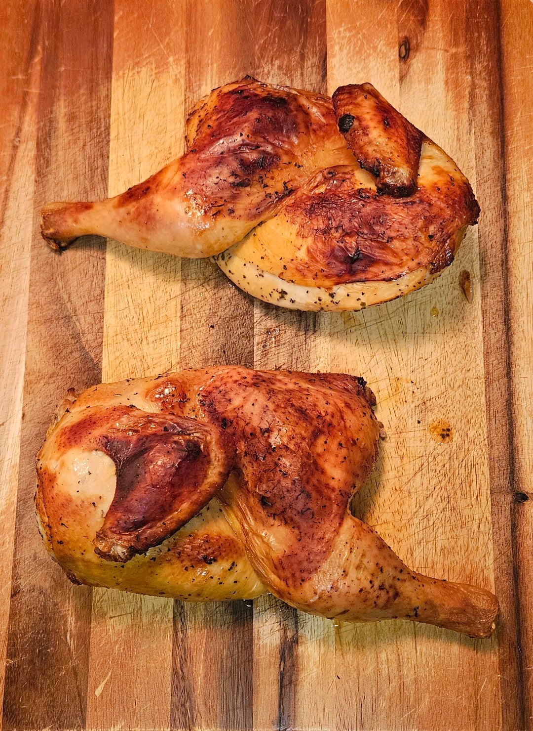Mixed some tequila, lime juice, orange juice, Goya and Mexican oregano and marinated about 30 minutes, then baked until it hit 165°. Missing that charcoal flavor, but it was still juicy, tender and tasted great!