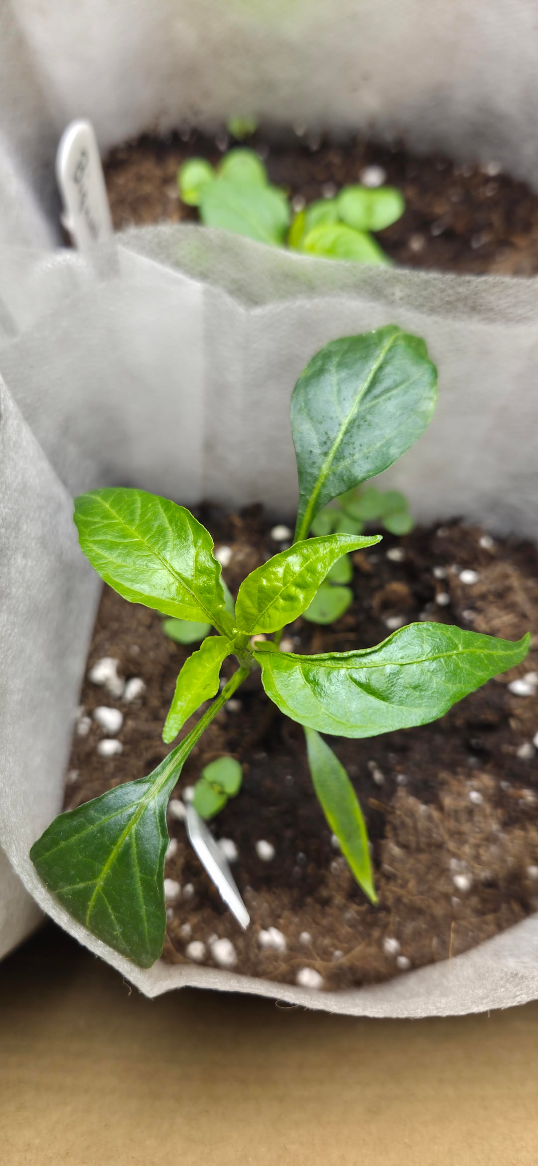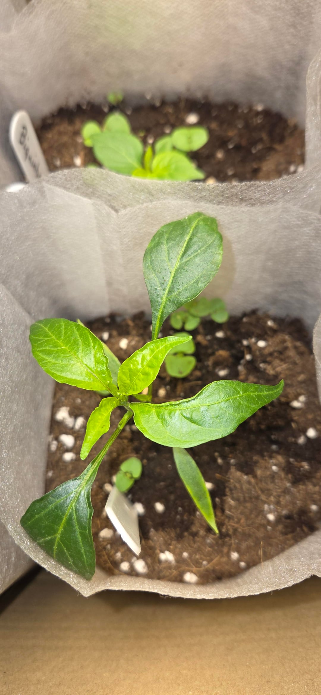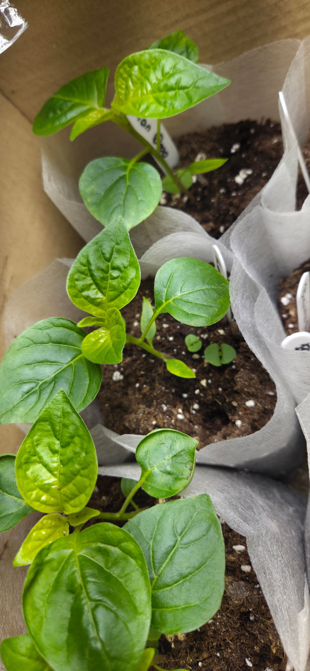 Some of the Cayenne seedlings are producing deformed leaves — partially developed leaves, twisted growth, and some that look almost upside down or curled. They just don’t look very healthy.