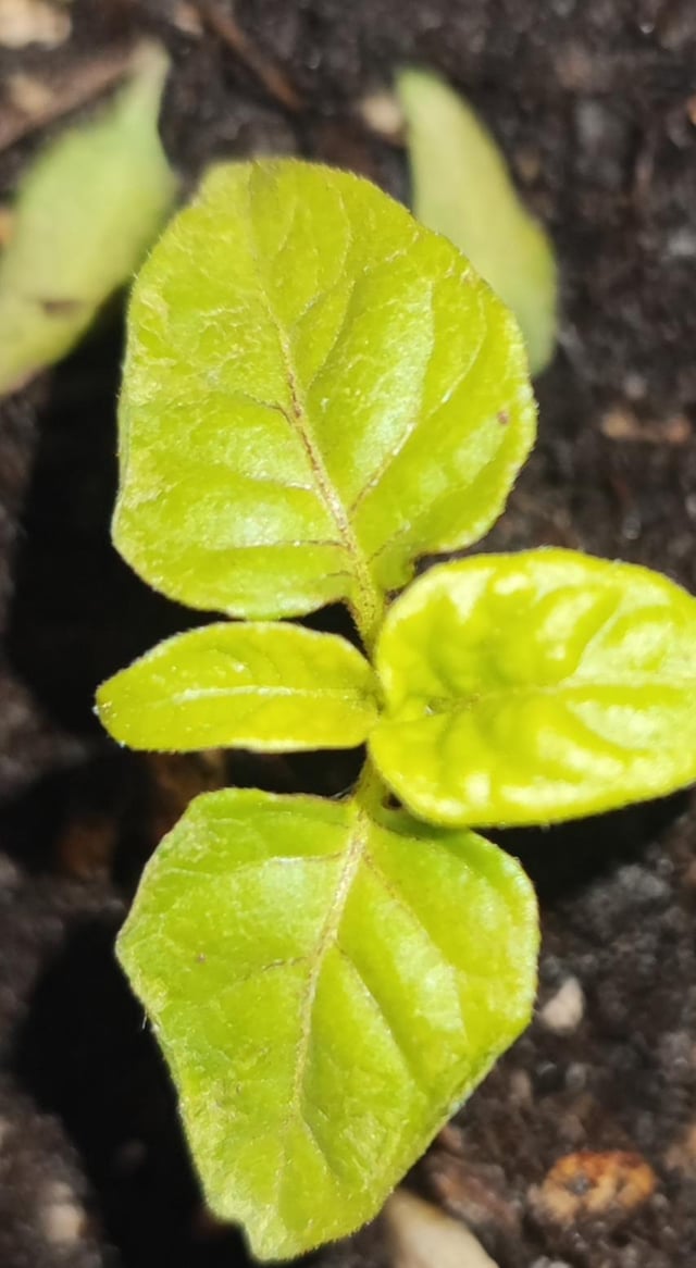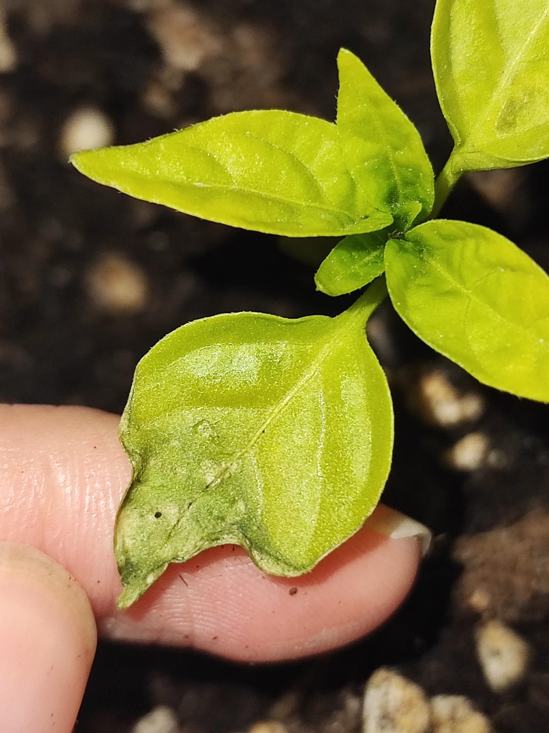 Three of my seedlings (Chi-Chien, Carolina Reaper) have lost their cotyledons all of a sudden and the oldest leaves have started becoming mushy. They also have those weird patterns. I repotted them into their own pots using a mix of growing soil and vegetable soil a week ago, since they have at least 2 pairs of true leaves now. I thought it was thrips at first, but I didn't see any and I think the weird spots would be more random, but it's always the outer part first that starts to look like this. I water them 1-2 times a week, when the uppermost layer of soil dries out. Could it be stress? Or an illness? All of my other seedlings are fine.