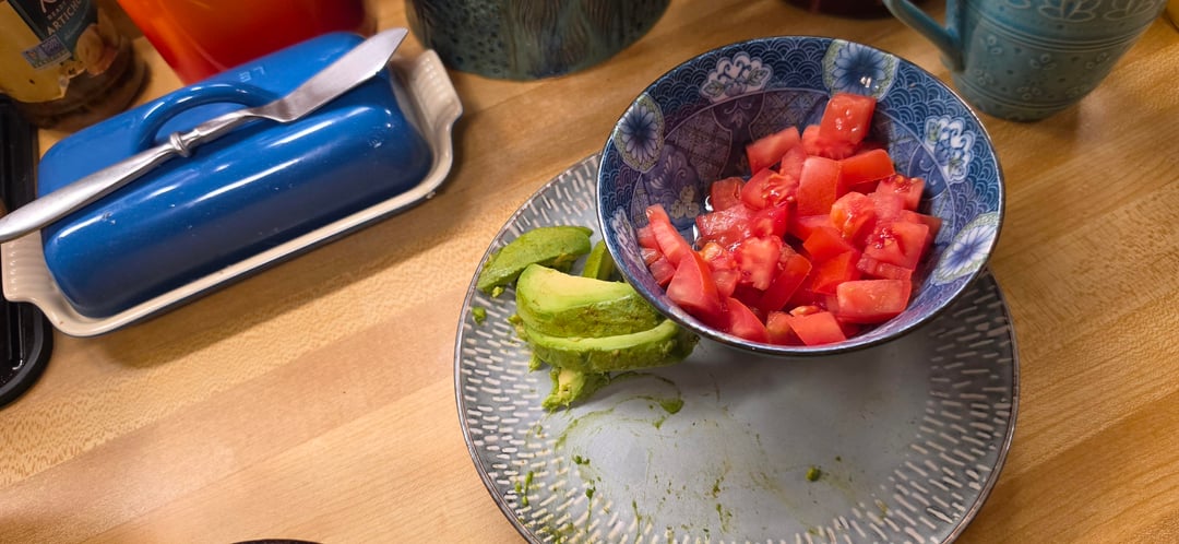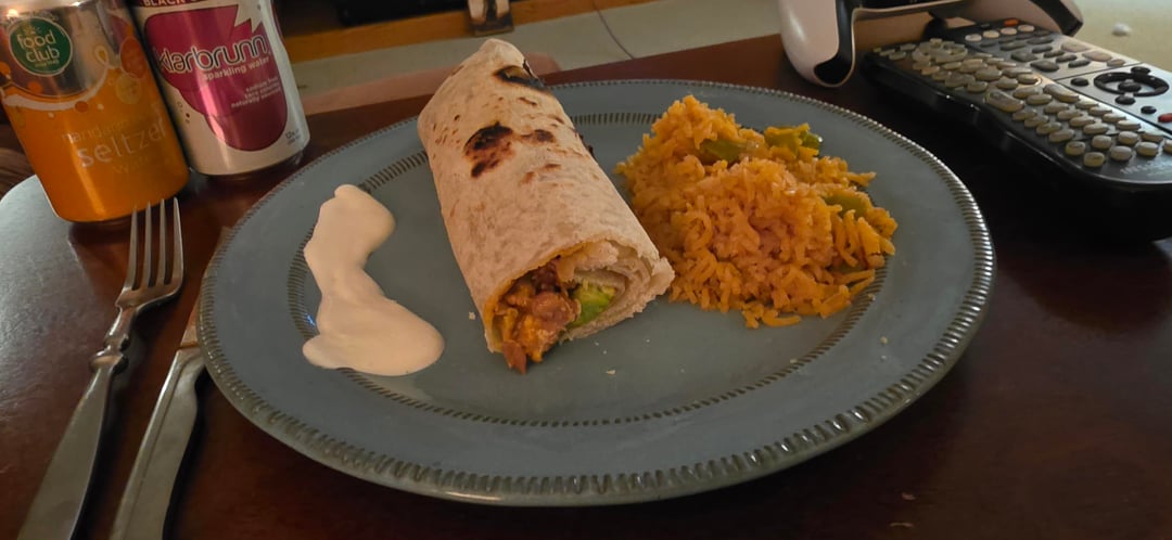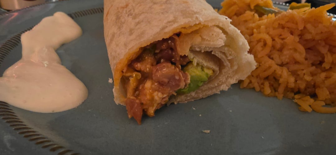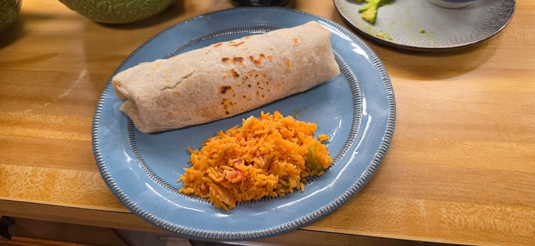 Frijoles puercos, carne asada, salsa Verde, aguacate, tomato in homemade flour tortillas. My abuela's rice on the side (not added in the burritos).