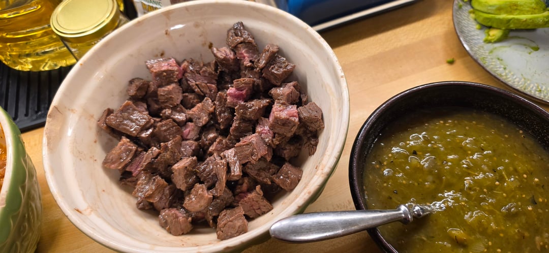 So the pictures might be a little out of order (two people taking pics) but these burritos were the effing bomb. This is a Jonathan Zaragoza recipe I tried for the first time. I normally make very simple burritos like my abuelita used to make (carne guisada and refritos in flour tortillas), or another recipe my wife likes that is a little more TexMex. Those are both good, but these are by far the best I've ever made.