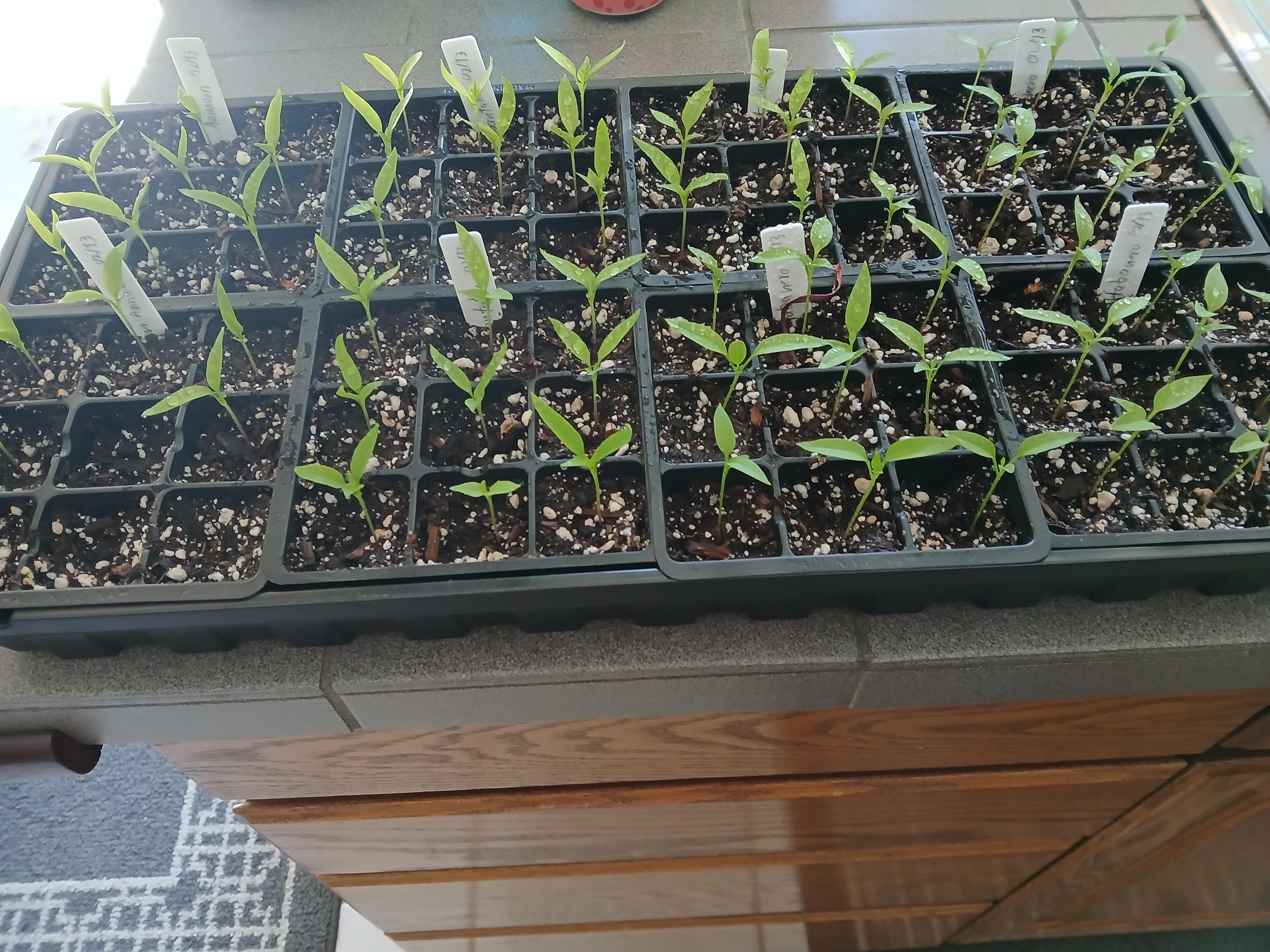 First time growing from seeds. I put them outside with the little humidity cover in the morning and when the sun goes down I bring them in, it's been getting chilly still. Water when with my spray bottle when they get dry. So now what? Do I transplant them into something a little bigger? Or the final pot? Change up to a feed as well? I'm in San Diego California for location. Thanks.