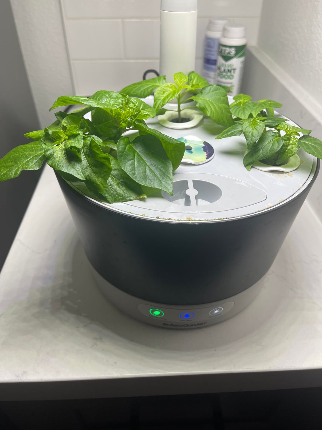 I have two Chocolate Bhutlah and two Tasmanian Ghost Pepper plants growing in an AeroGarden. They were started on 2/16, so just over a month ago. The one Bhutlah has both seeds take, so it looks to be two plants in the same soil pod. I am going to be growing these fully indoor in a grow tent, as I don’t have the ability to do them outside currently. I was wondering when I need to move them from the AeroGarden and into soil and into the grow tent? Based off answers on a previous post, I was going to use a mix of coco and perlite when I move them, and water with maxigro 3/4 times a week, at a dilution of 1 tsp to one gallon of water, though not sure if I need to do this down the line or right after I pot them initially.