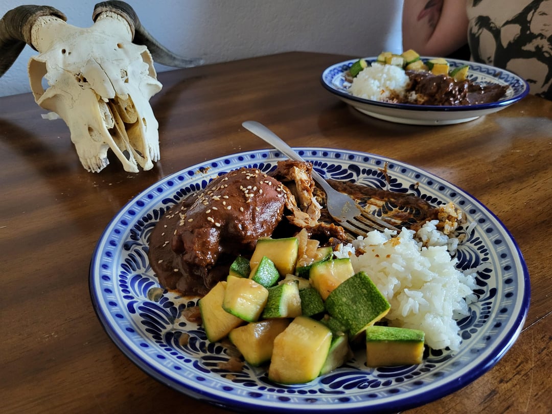 Good thing about mole is that there are so many different types. Its always a new adventure to find the ingredients, do the prep work and cook. After all that fun, I let emulsify for 2 or 3 nights if I can hold out. Sharing with our neighbors is also most rewarding.