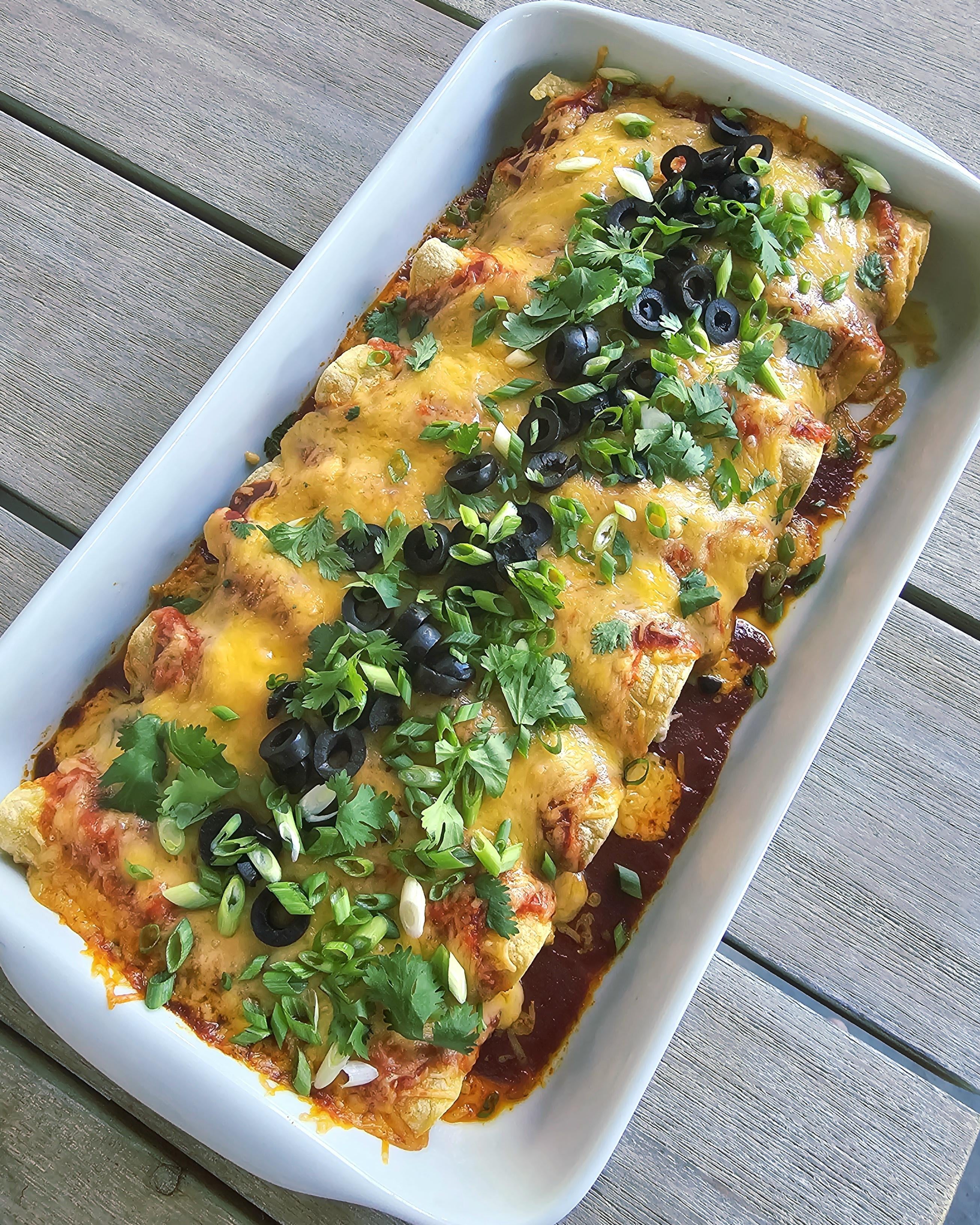 SiRMarlon 7 hours ago pass on the olives … I like my Enchiladas hot off the frying pan, all the baked ones I have ever tried just tasted dry.