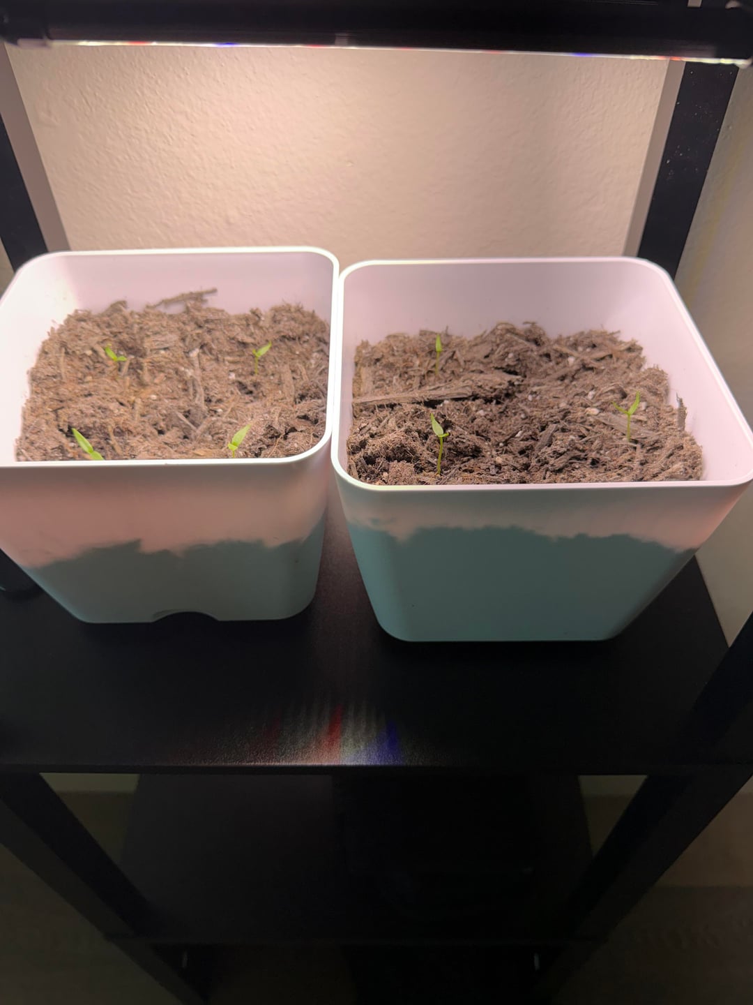 This is my first time growing anything. These guys sprouted about 3 days ago. They seem fine. Keeping the light on them for about 14 hours a day. Let me know what y’all think.