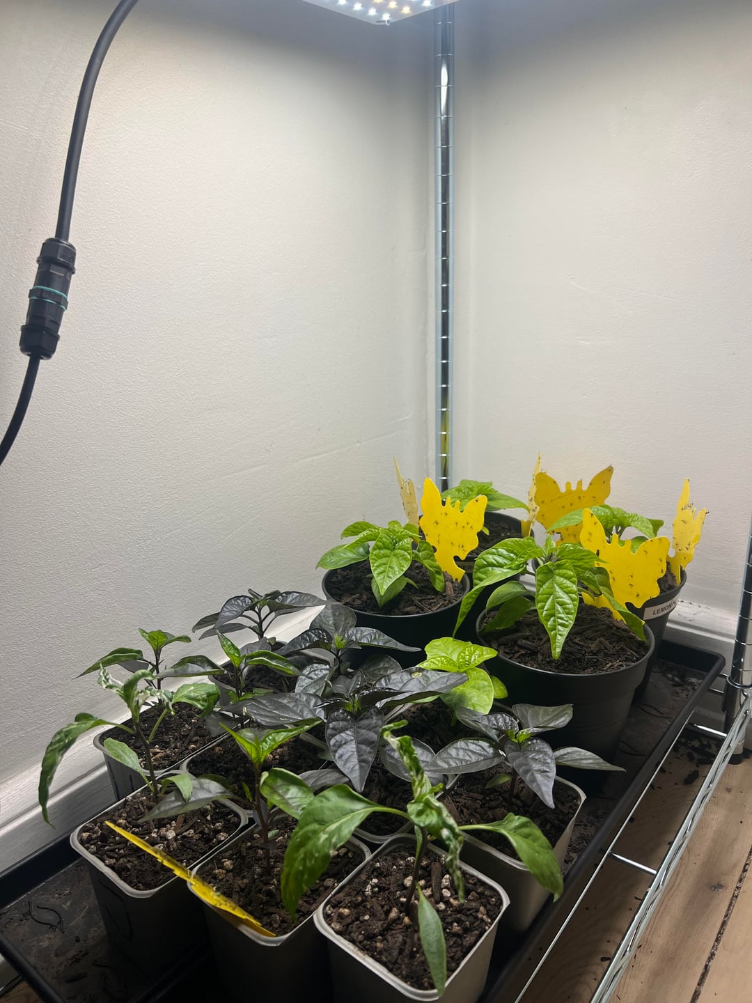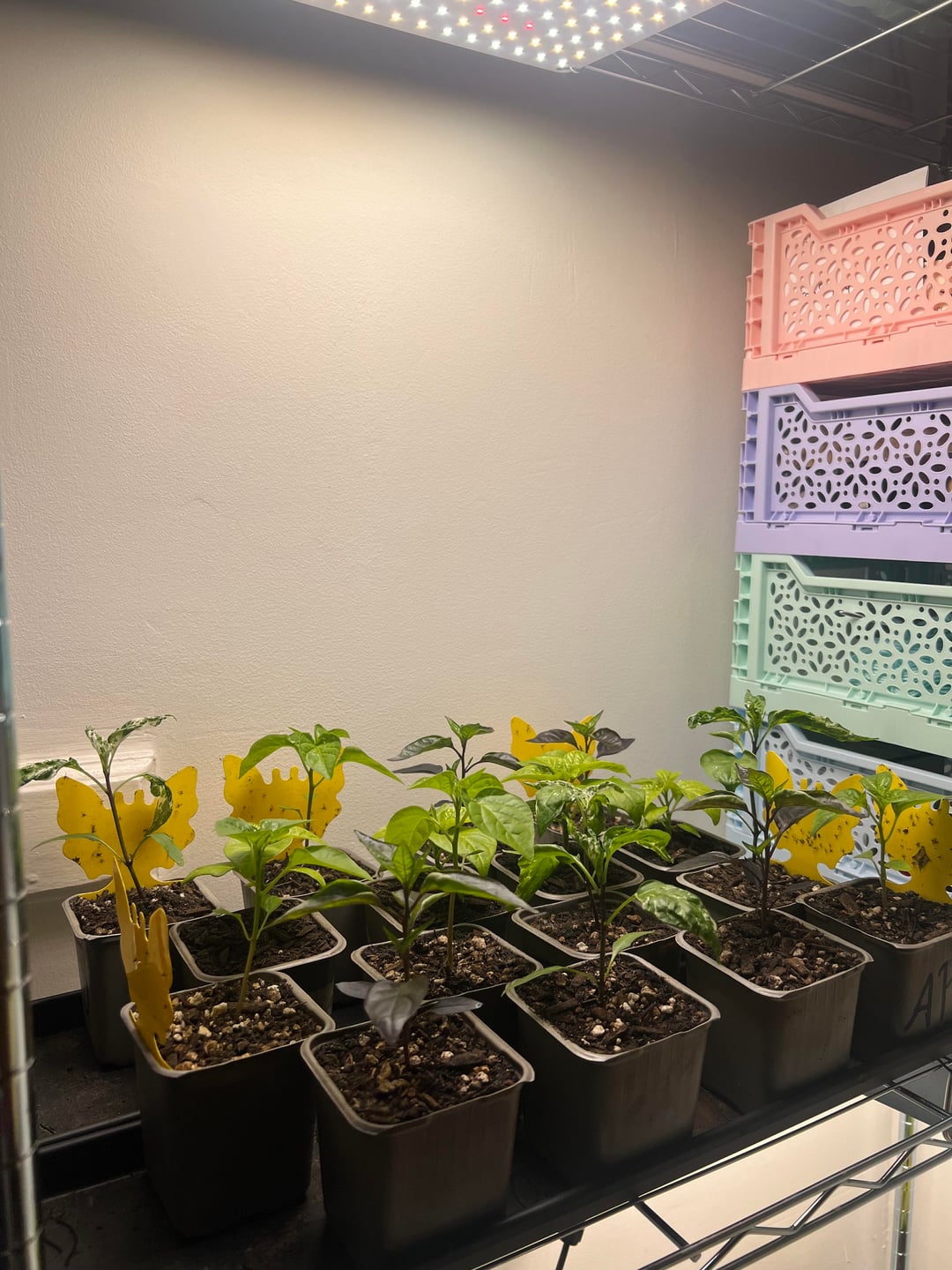 I have a 100w led panel over each of these at about 70%. There is a month or so to go before they can go outside, which will be a whole new thing to figure out as I have about 4 times the amount of plants I have space for.