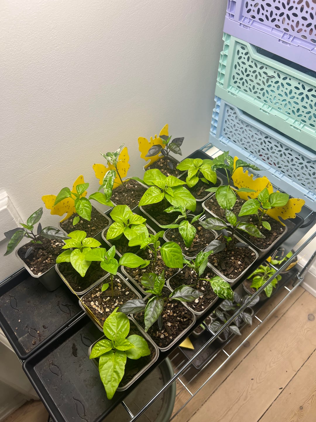 My plants between 7 weeks and 1 month old, I delayed some of the varieties a bit because I expected them to grow faster. Weirdly my chinense peppers actually seem to be growing the fastest.