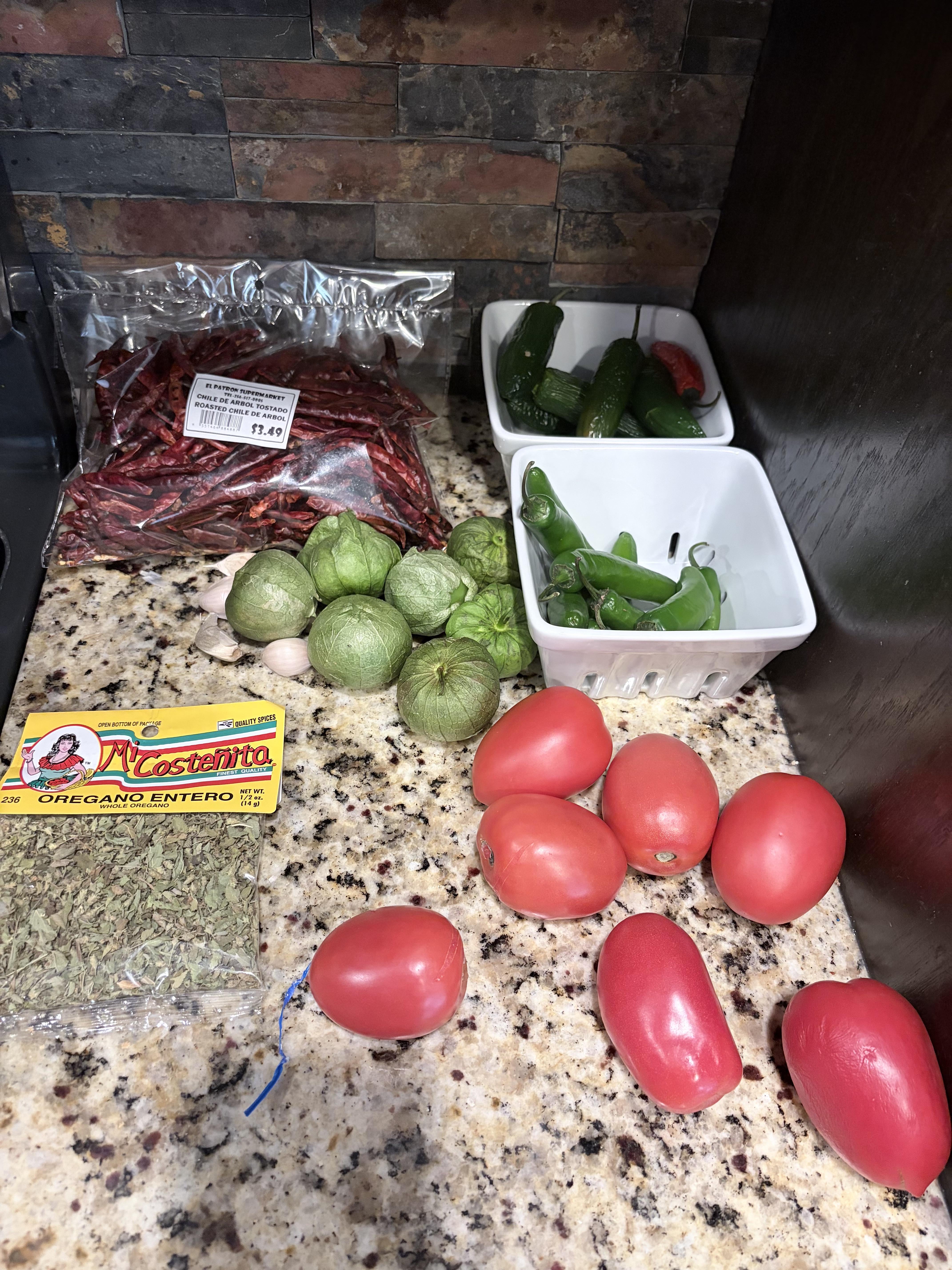 Quarter the onion and get some char on all sides of the pieces. You can toast the arbol on a skillet or comal if you have one, but if you do be careful they’re quick to burn. As soon as they are fragrant take them off the heat and soak in hot water for 10 to 15 minutes. You can also skip toasting them and just steep them in the hot water as they are and it won’t make a huge difference imo.