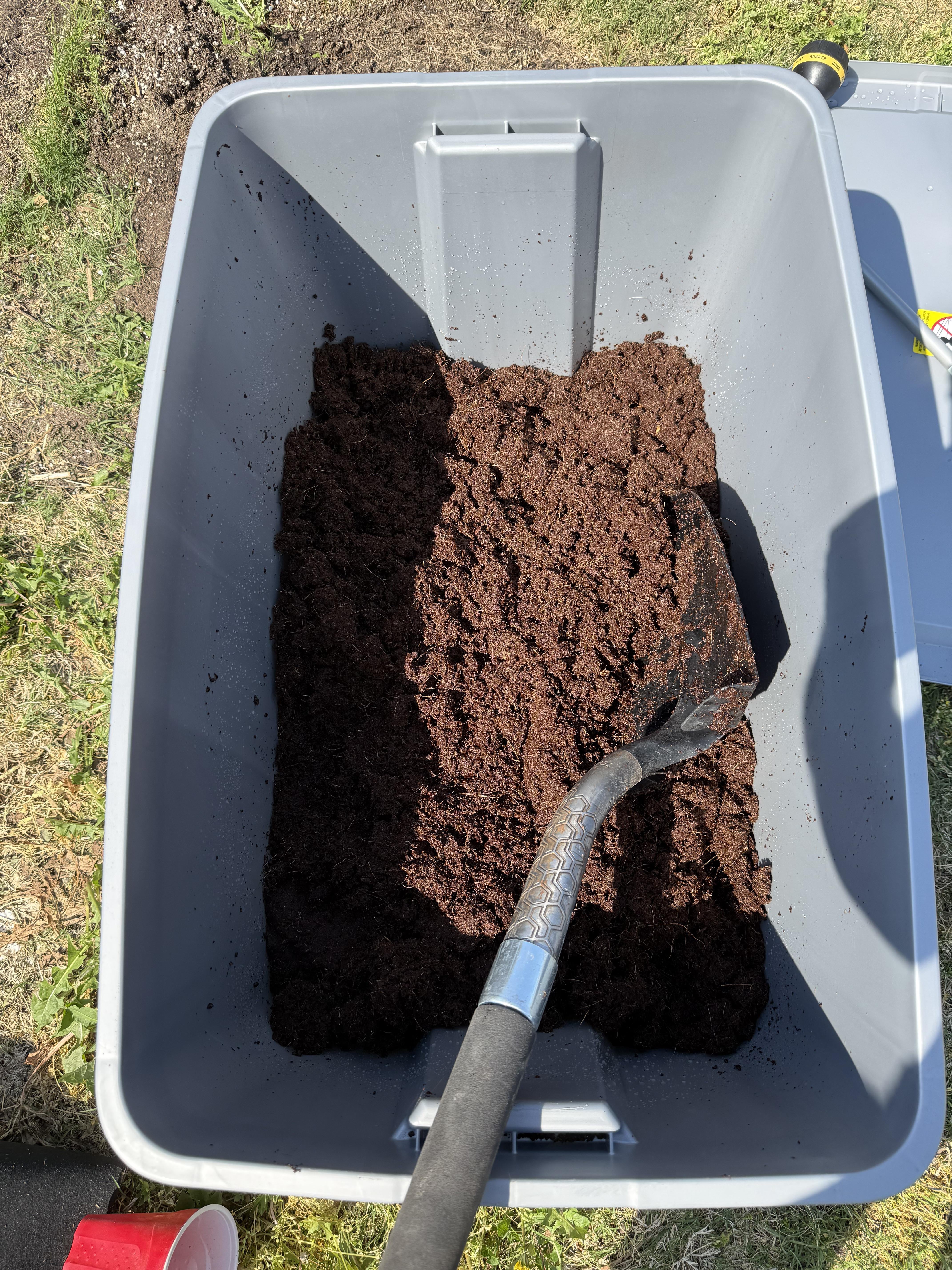 Wonderful stuff, but it’s a pain in the butt to reconstitute from bricks. You think an 11 lb brick ain’t much, but wait til you see how much water this stuff holds and how much it expands once fully hydrated. If you’re going to use it, you need a drum or tub and a good shovel to break the bricks apart. You’re also going to have to wait a few minutes for it to fully expand and become hydrated before it’s workable into bags, soil mixes, or a custom soilless seedling mix. It doesn’t have nutrients, so if you’re putting plants into this you’re going to need to amend with a focus on calcium because coir naturally binds calcium. A bit of extra bone meal will provide a long term slow release of calcium. Caveat: some sources will need to be thoroughly rinsed to remove excess salt content and buffered with Cal-Mag if you’re using it right now right now (or a good dusting of bone meal if you’re prepping future bags).