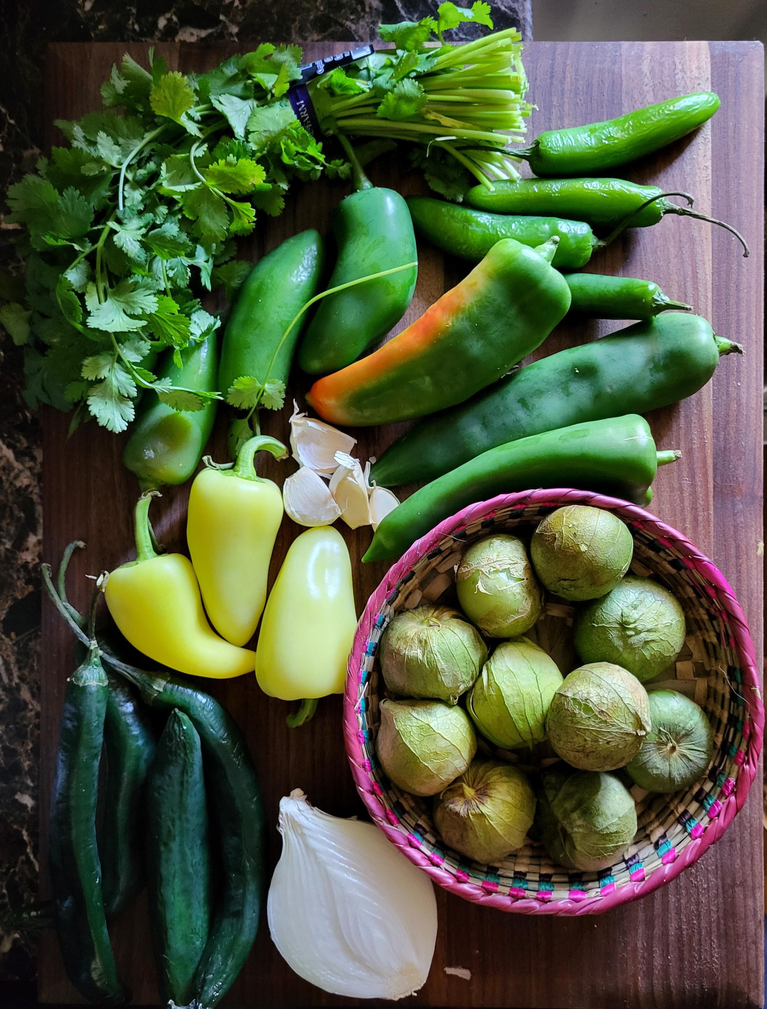 Preparando los chiles para el guisado de lengua de res.