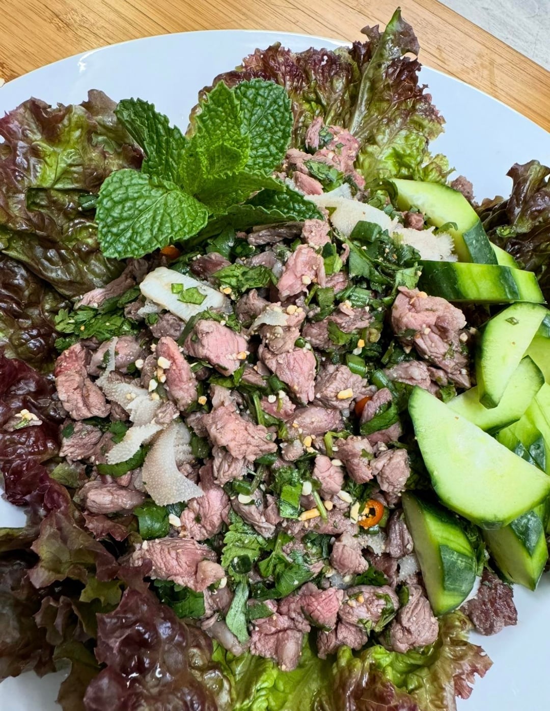 I made this spicy beef salad, and it turned out incredibly delicious.New York strip steak, rice powder, cilantro, green onions, mint leaves, Thai chili, sugar, fish sauce.by foodie_2598 Spicyspicy foodspicy recipesWrite A CommentYou must be logged in to post a comment.