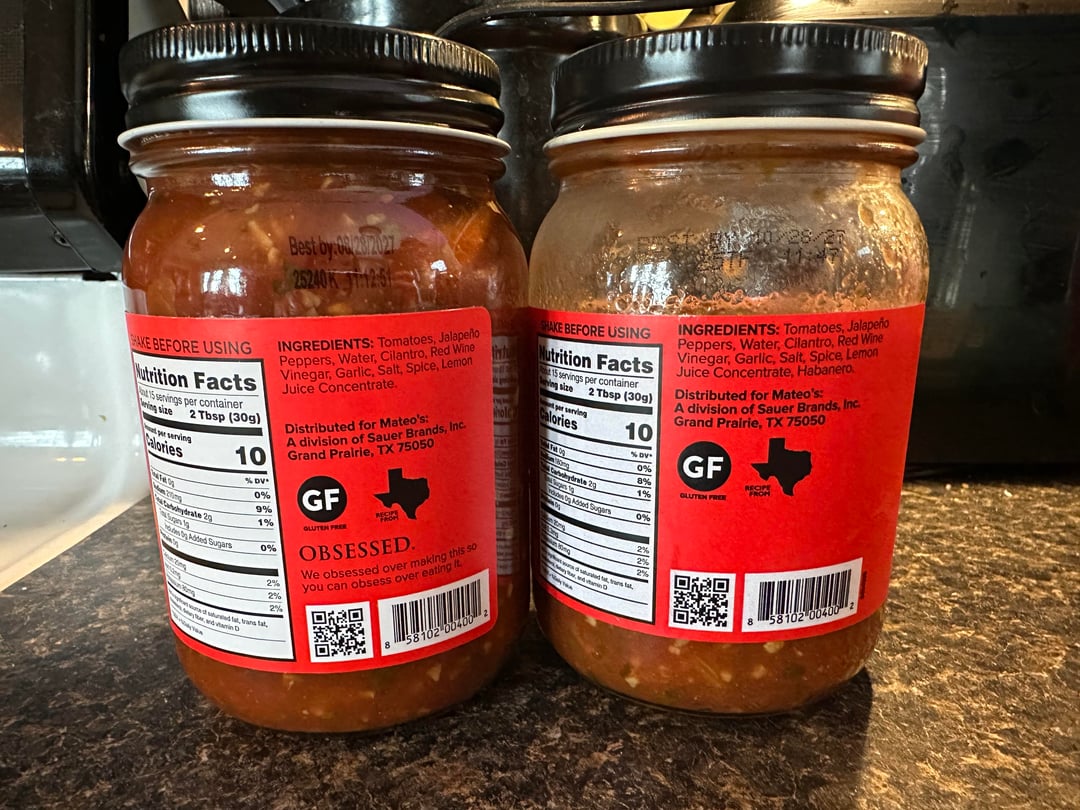 Bought and tried Mateo’s hot salsa for the first time and ate the whole jar. So naturally I went and picked up 2 more. As I’m eating the newly bought one, it’s way hot. I check the ingredients and one has habanero and one doesn’t, but they are labeled the same?