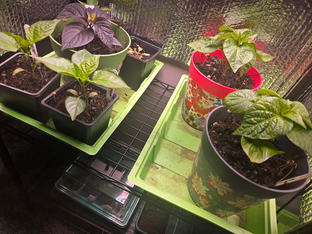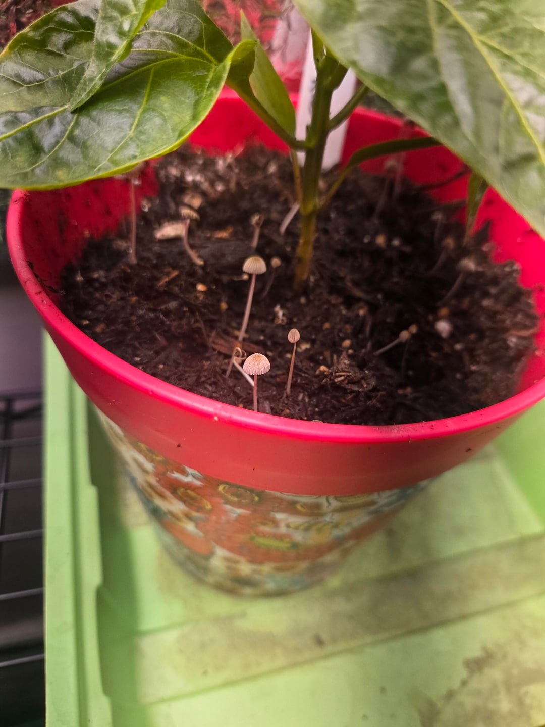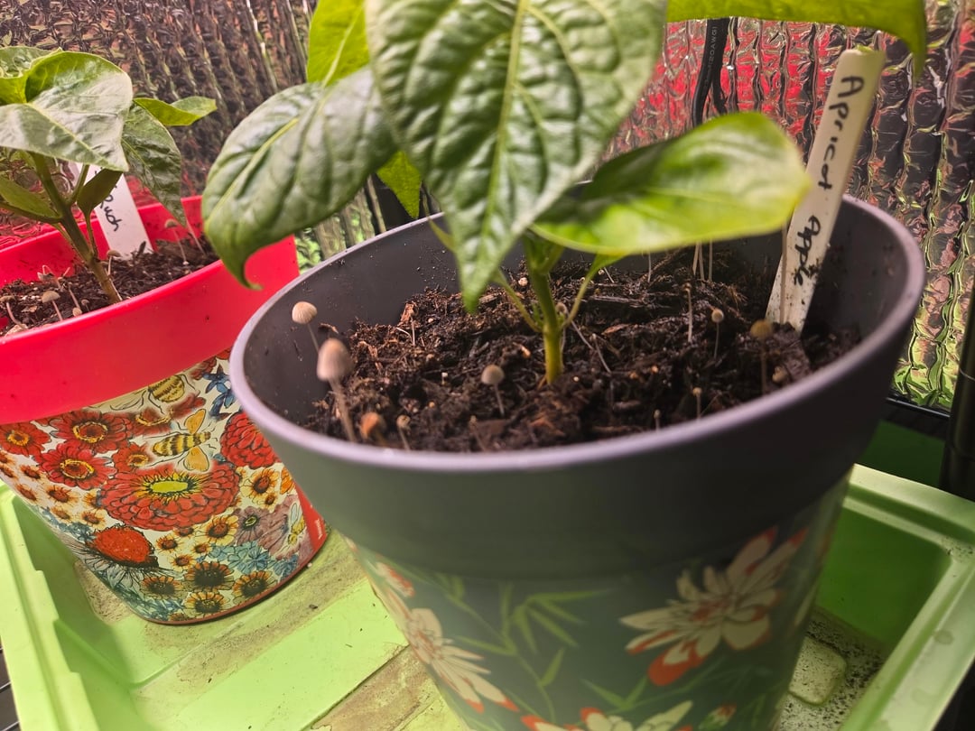 Since potting up last week not only have my peppers/chilli's shot up but loads of tiny mushrooms have aswell.