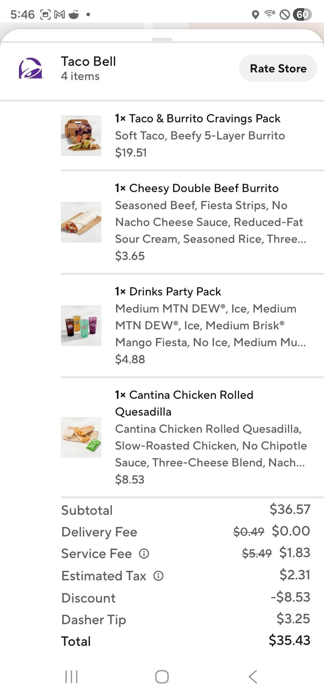 door dash is more expensive. you just used a promo code to make the doordash prices go down to the normal taco bell price. not everyone gets the same promo codes.