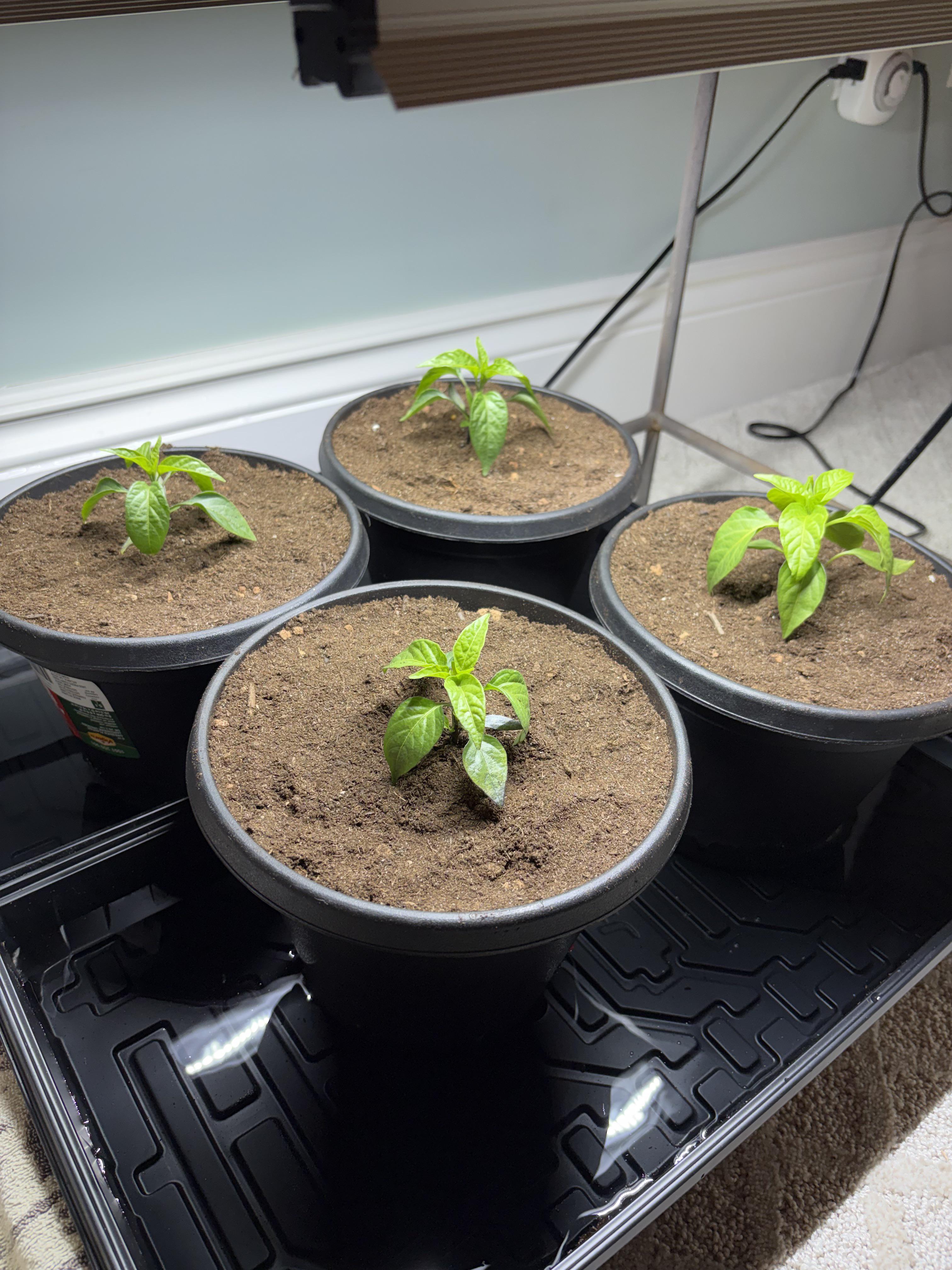Had them in red cups previously. Had to leave them unattended Thursday-Sunday because I was travelling. They were a bit dry and droopy when I got back. Just potted them up into 1G pots tonight and currently bottom watering. How am I doing?