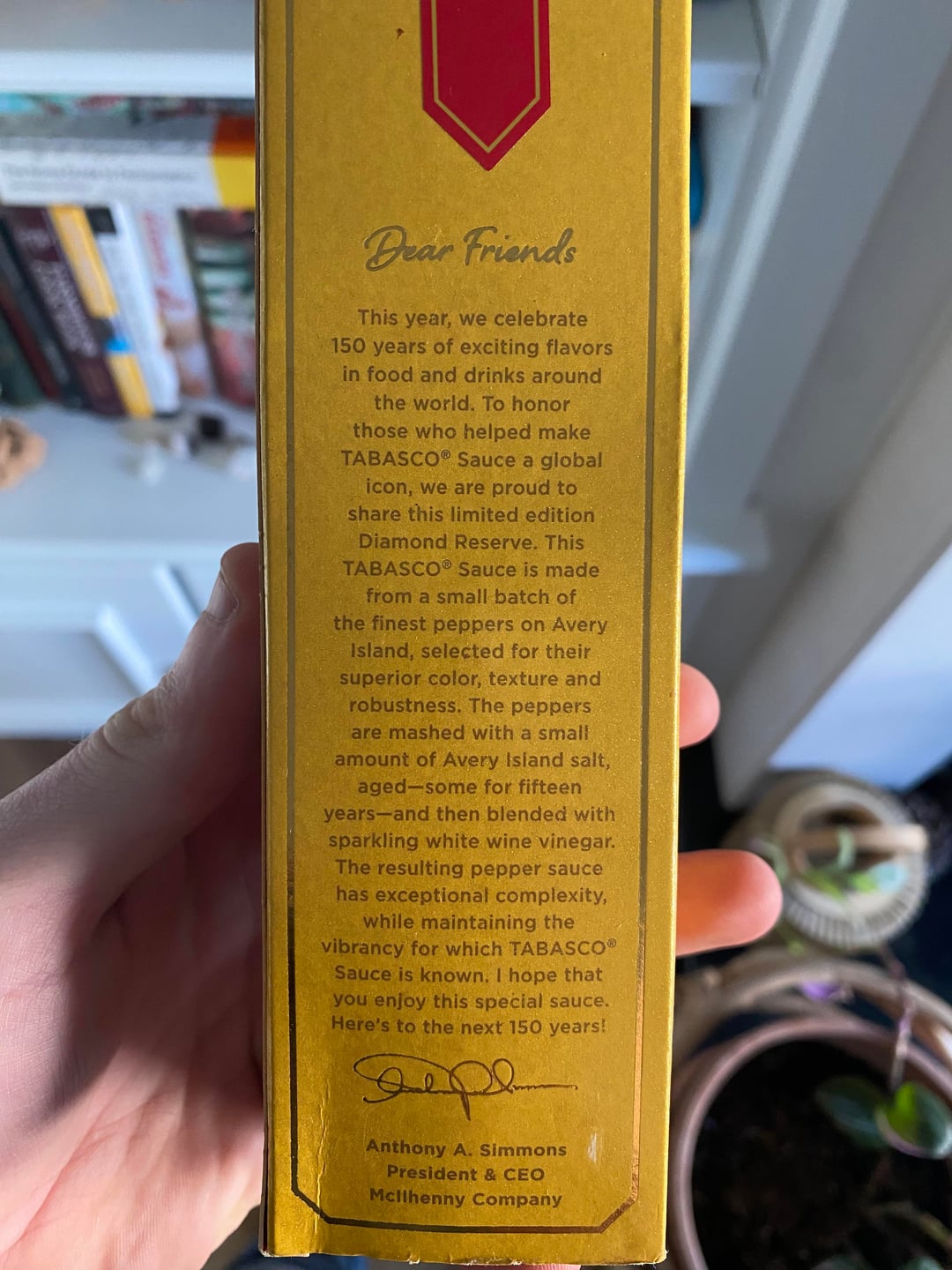 [Read more here](https://www.thetakeout.com/what-tabasco-diamond-reserve-going-for-2-500-on-ebay-1826089799/)