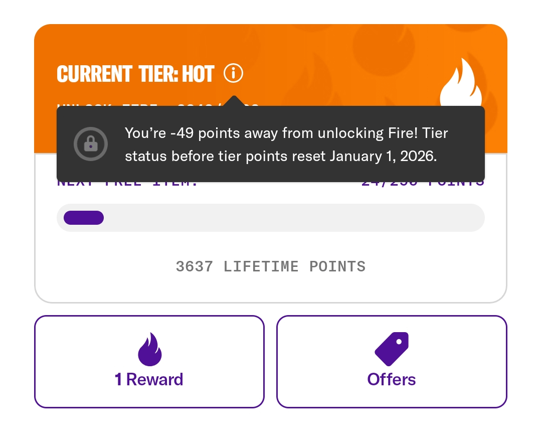 January 2026 is getting close. I swear it already happened.by philbert46 taco bell 3 Comments Knistpup 9 hours ago Same thing happened to me a few weeks ago I’m still negative points away even though I had fire somehow the app glitched and screwed me ThisIsTheOogway 9 hours ago If they don’t fix it soon we should sue Strange-Effort1305 9 hours ago Ever see the the movie Major League? That’s Taco Bell right now.Write A CommentYou must be logged in to post a comment.