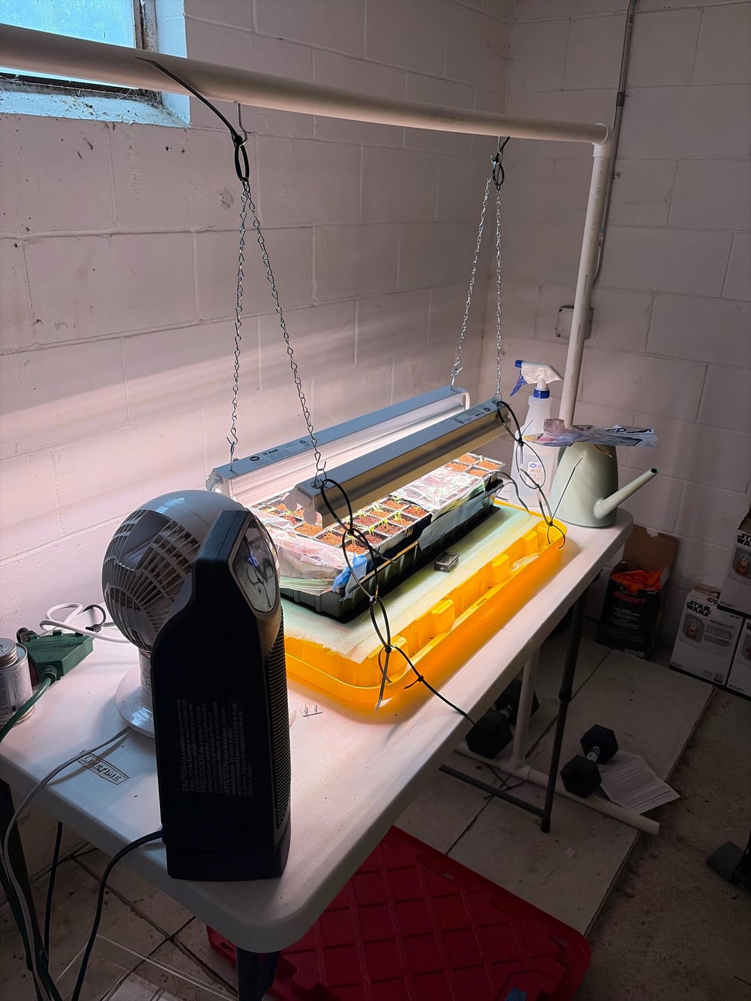I have plastic ziplock bags covering the unsprouted cells, I have a fan on breeze mode pointed at them, and I have a space heater going because this is in my garage and ambient temp is like 50