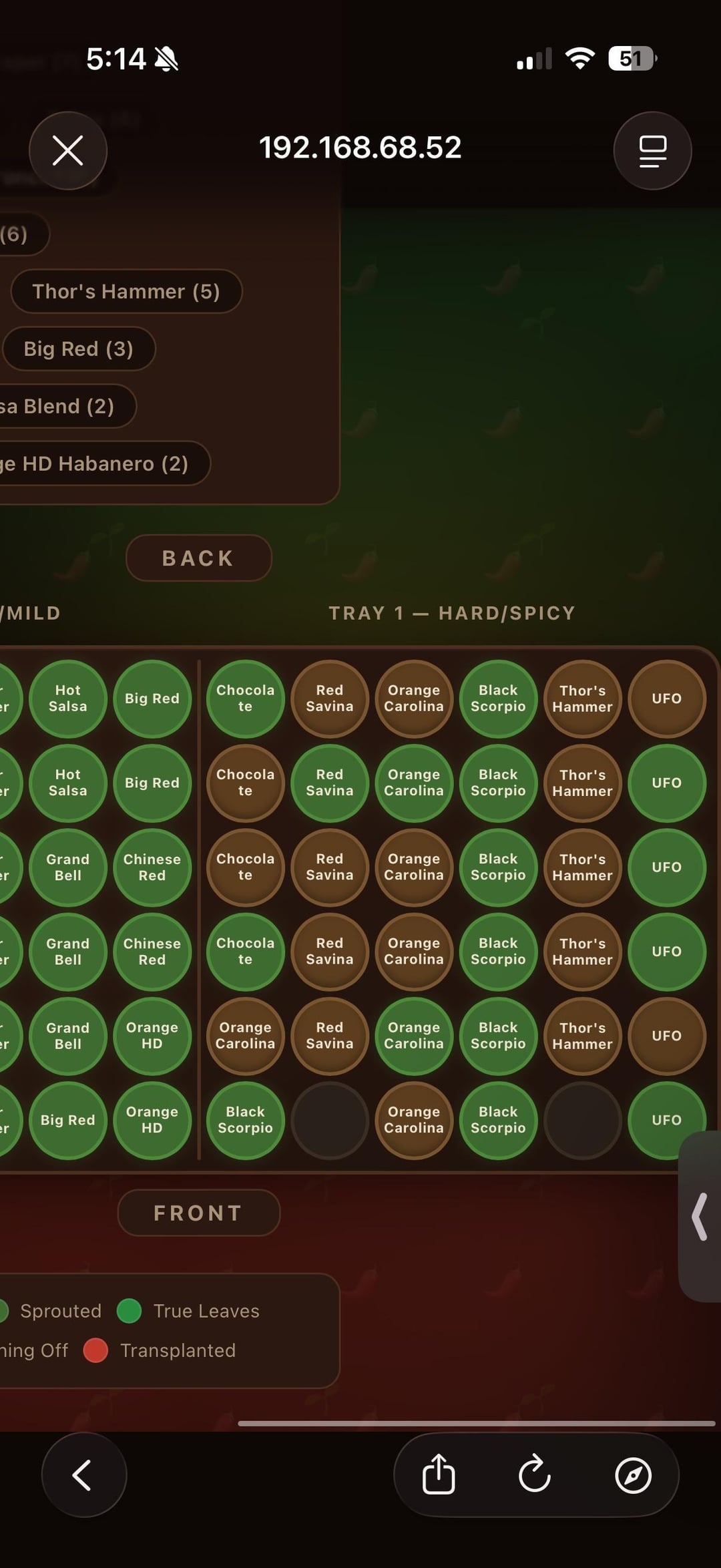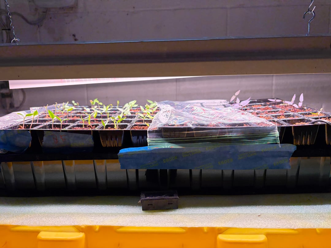This setup is a great representation of my brain. So I’m using a Burpee 72 cell tray, with several different pepper types. Built a little app for tracking growth. As you can see, just the “harder” / hotter ones waiting to come in.