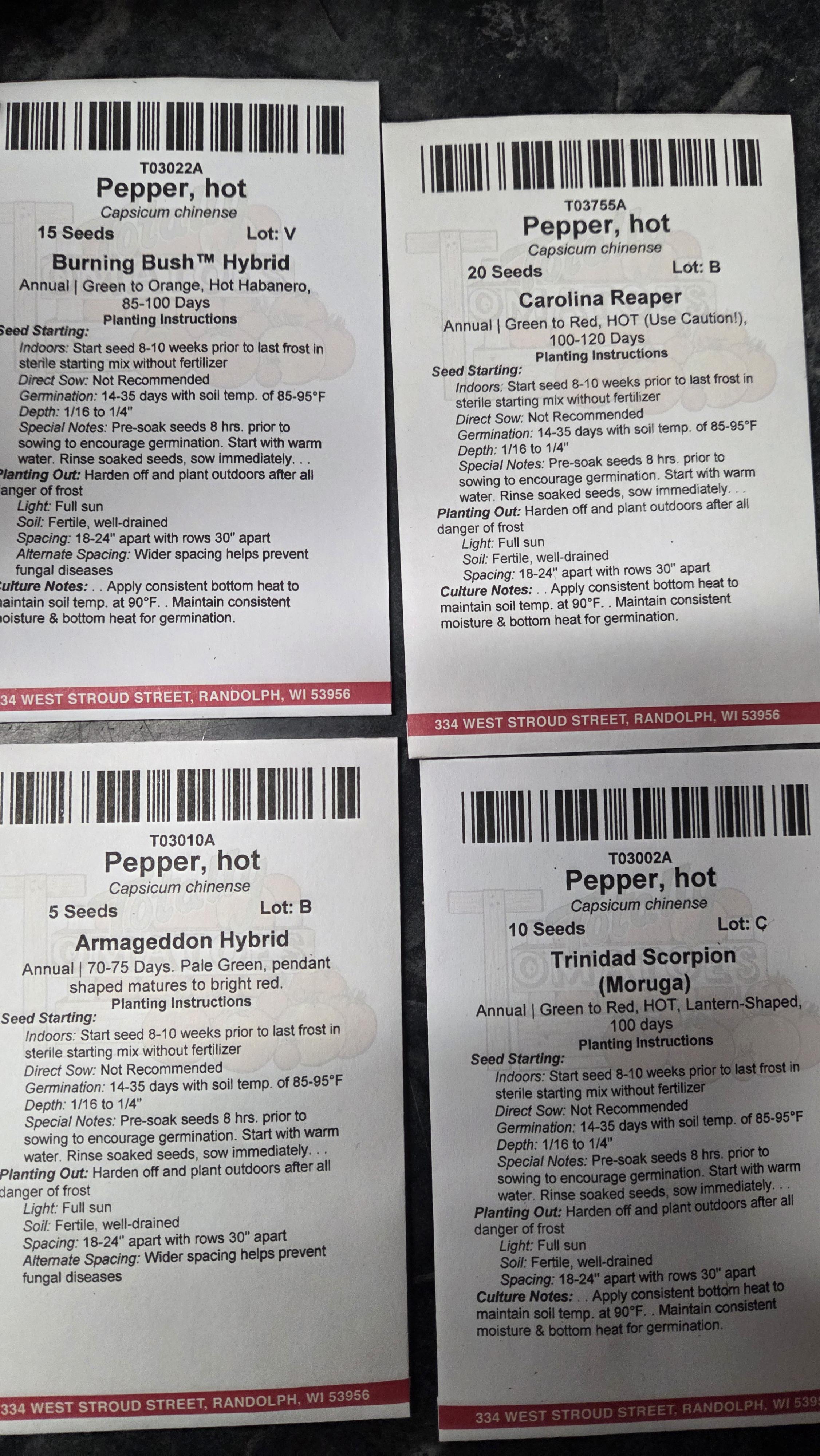 bought some seeds my son picked out of a catalog and it would appear that the scientific name on each package is the same. did I just buy 4 of the same thing or whats the deal?by Responsible-Chest-26 Hot peppersPeppersSpicy Stuffsweet peppersWrite A CommentYou must be logged in to post a comment.
