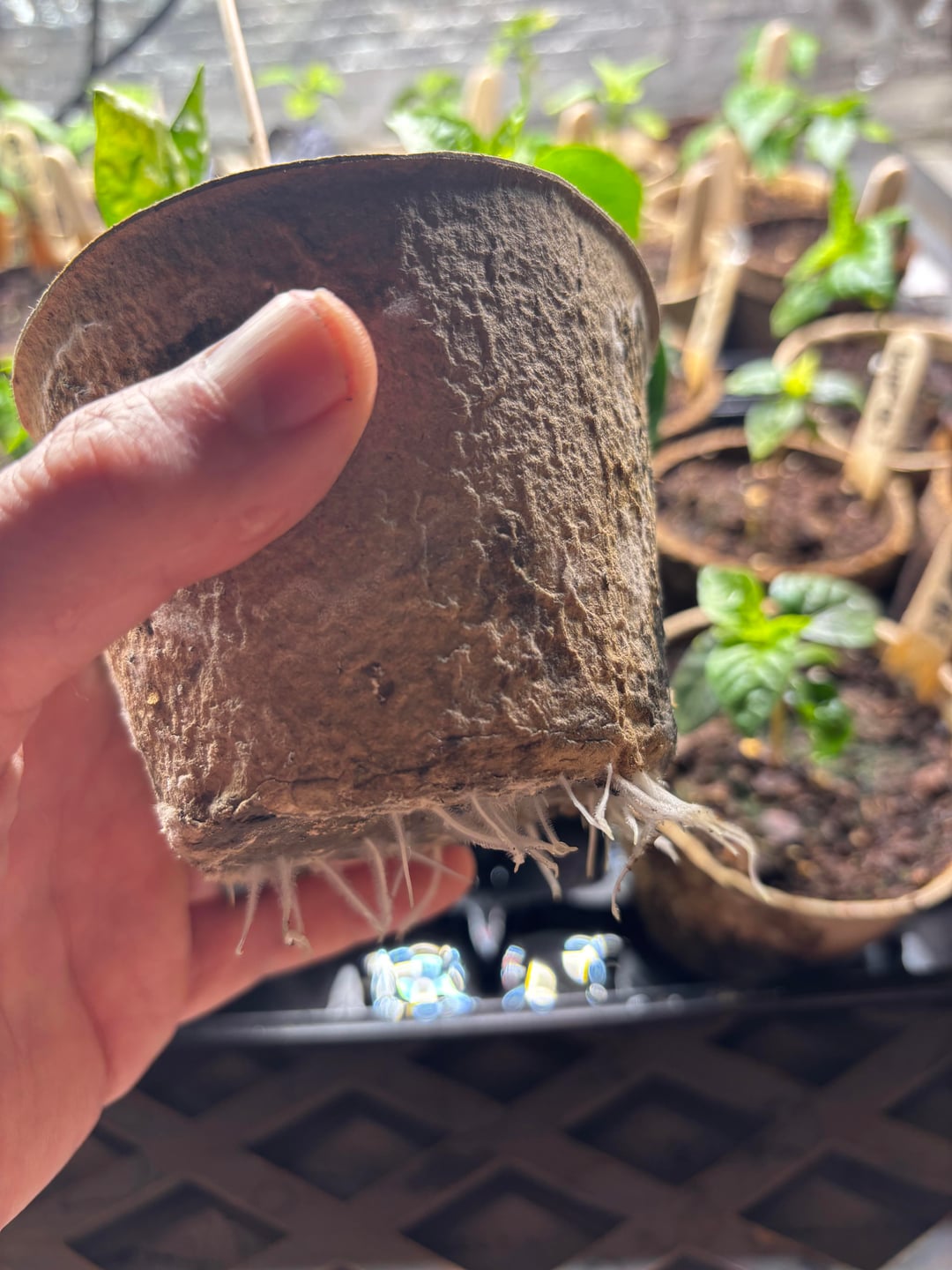 Think I may have an issue..have these pots in a tray, water pooled in the tray, now roots are growing through pots..