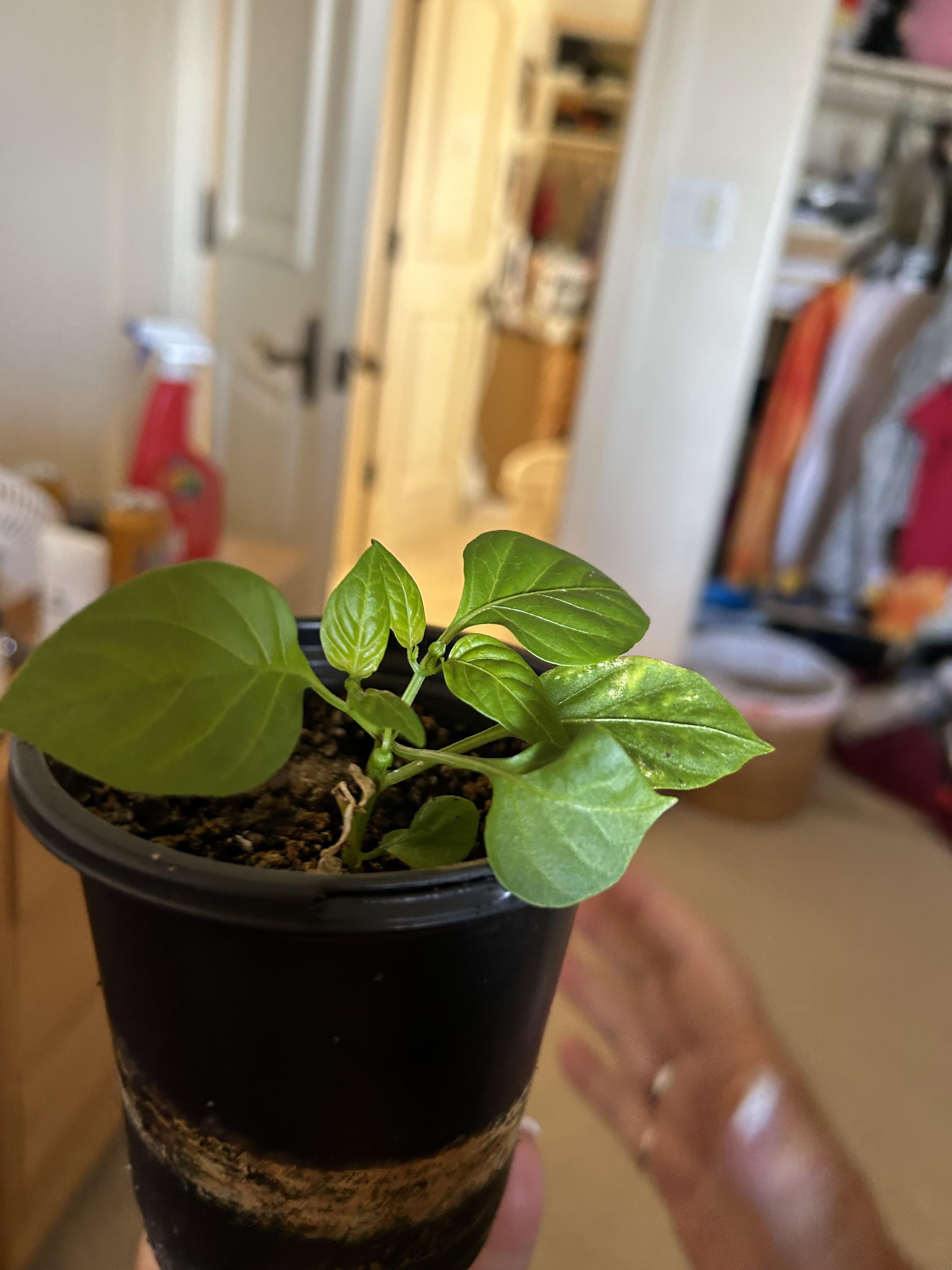Hi my pepper plant is growing great and its getting its first flowers but it’s stunted. When I transferred it to the pot I put some of it underground because it was really leggy if that helps.
