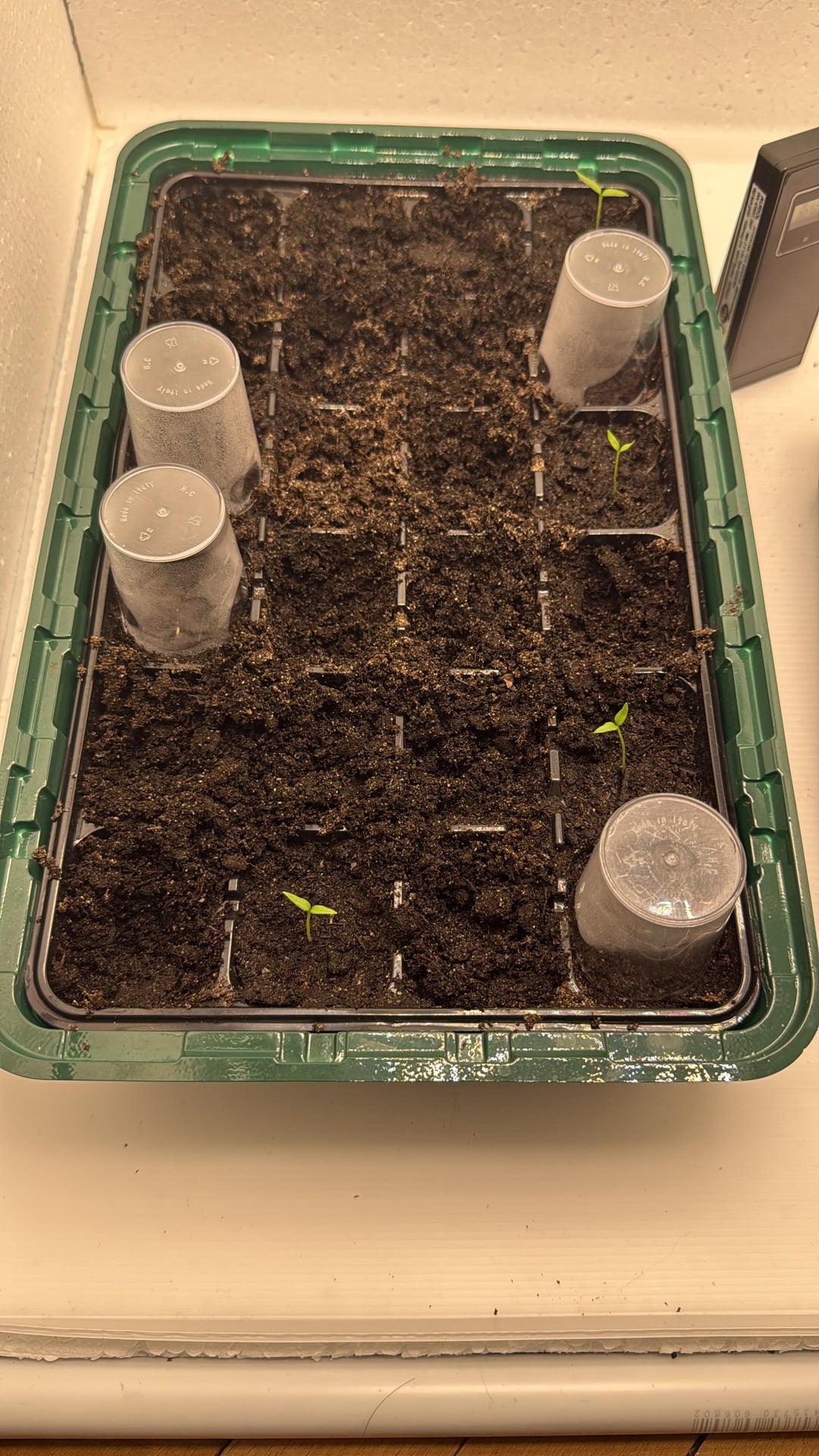 Hello all! I am new to this kind of indoor growbox thing and I have managed to make my own environment. After mistakes like don’t put the seed 2cm into the soil I have managed to sprout my 2 habaneros!!