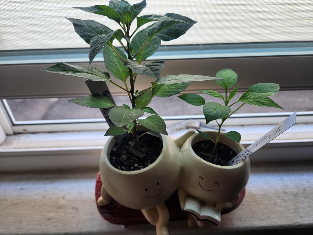 some happy starts. can't wait to get them outside. it's almost time. Gotta get my greenhouse up stat. fYI the unique vessels are a pepper challenge grow out.