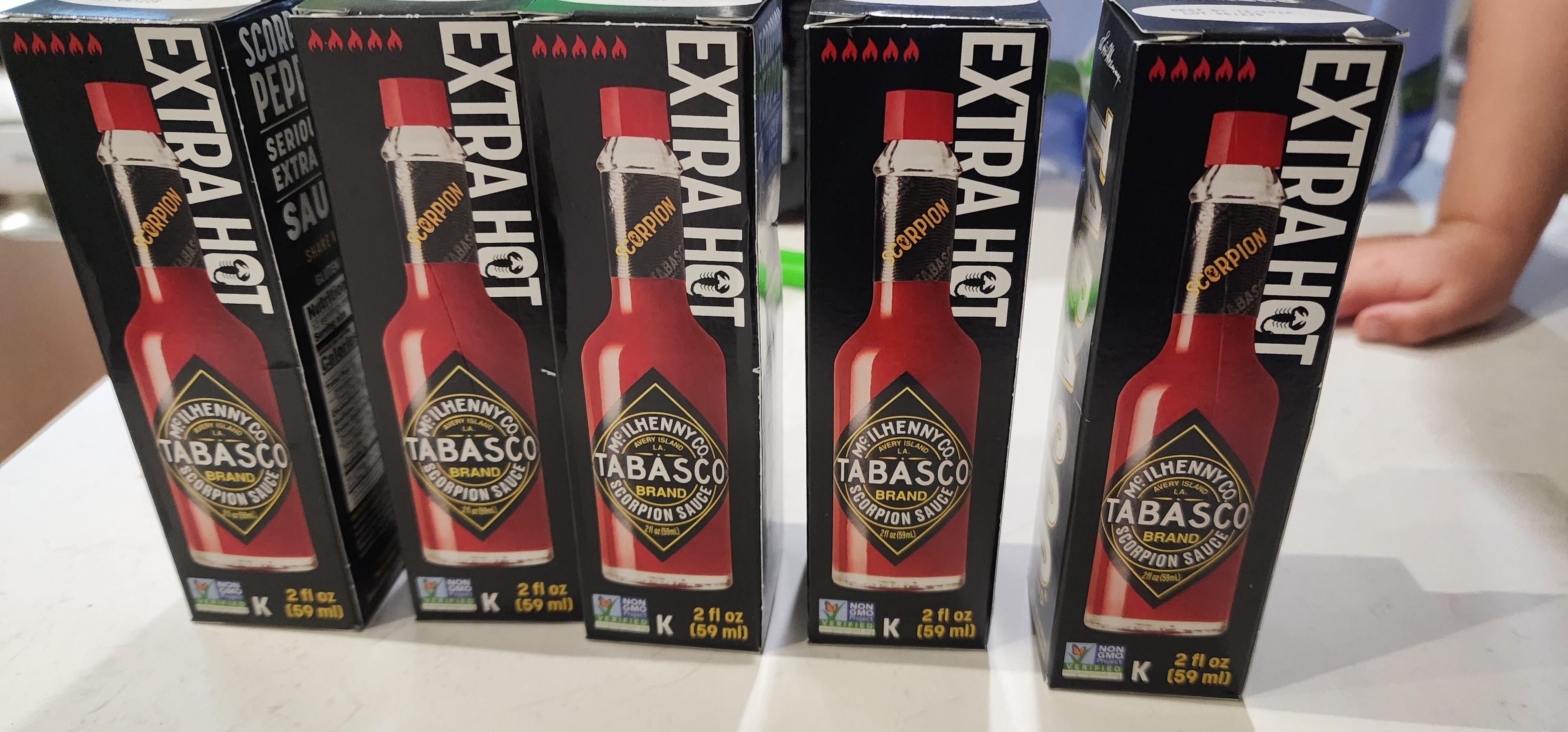 most shops will stock the regular stuff, and even the green usually. Sometimes you can find the habanero too. but the scorpion pepper sauce? never. so when the online international food shop got a box of them I had to buy a few 😆