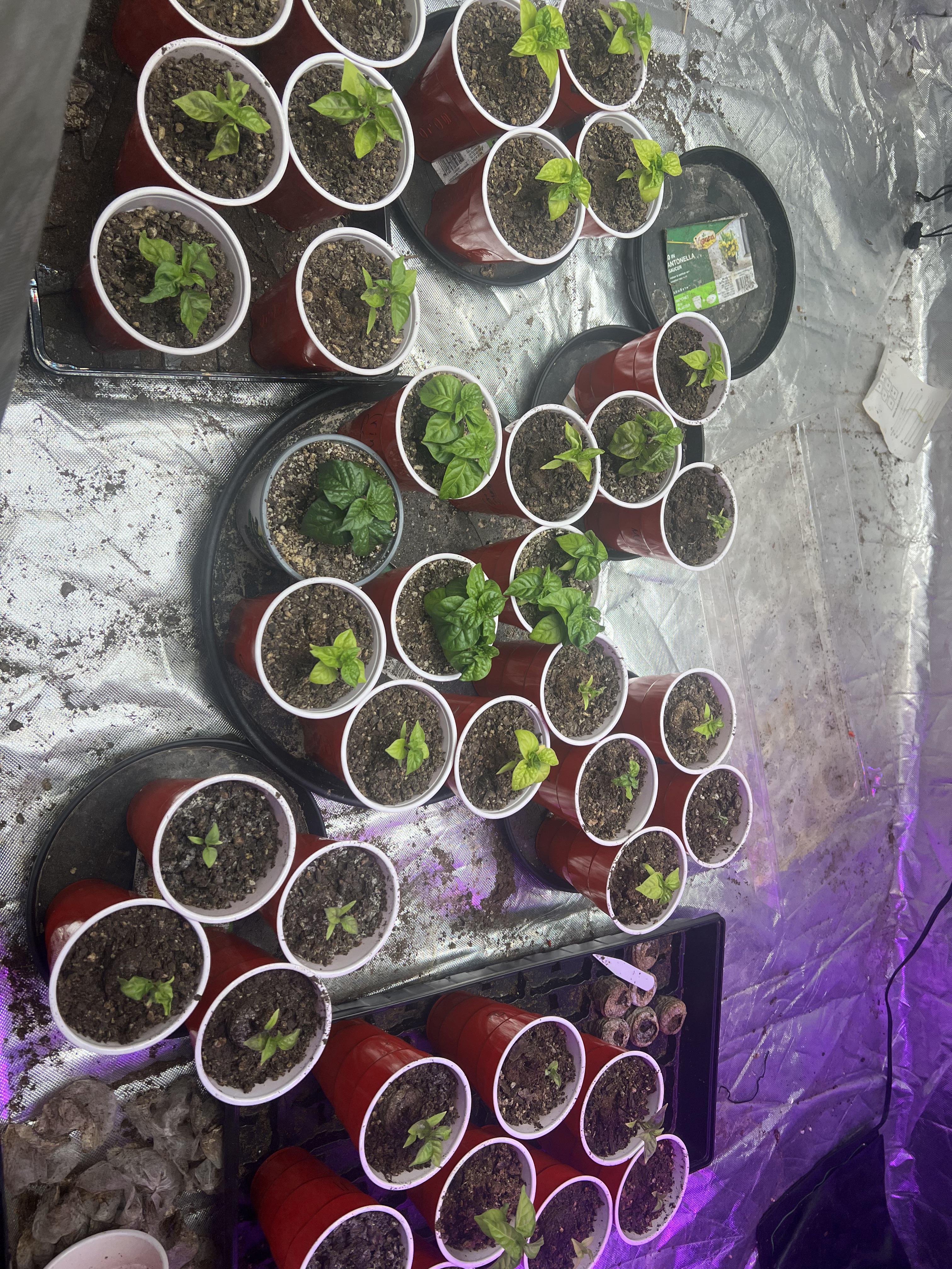 I feel like these plants are not doing well in my tent and normally I wait for the plants to be bigger but a lot of these peppers roots are coming out of the bottom of the solo cups and a good amount of them are yellowing. I water them whenever they dry out which is like every other day. Temps stay around 85 humidity 45-50%. In the tent so I don’t know why so many are yellowing. Majority of the yellow ones are a variety of scorpion