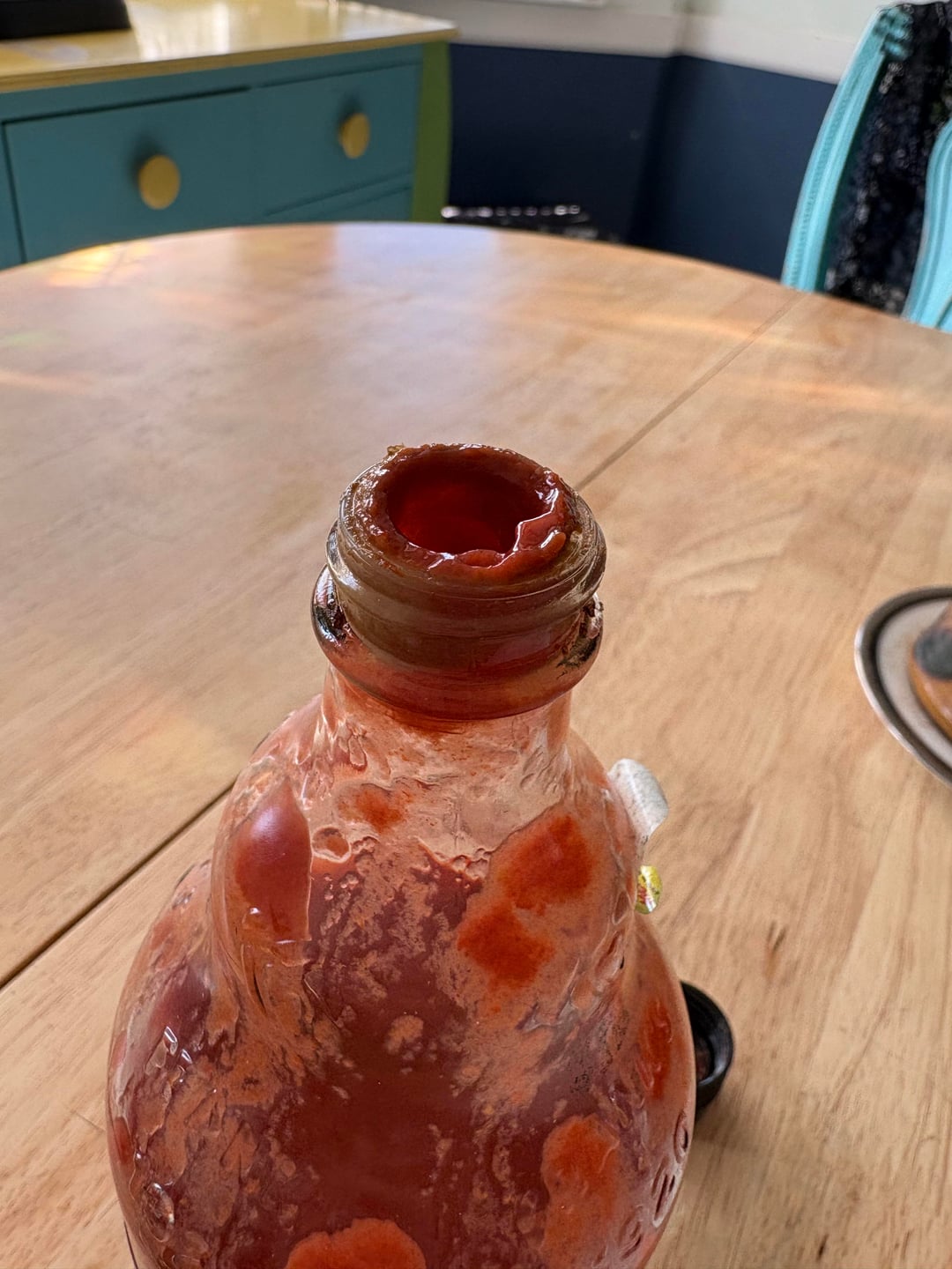 Due-Improvement7128 4 days ago I had a bottle of franks that did this that I stored at room temp. Don’t know what it is and don’t trust it so I dumped it