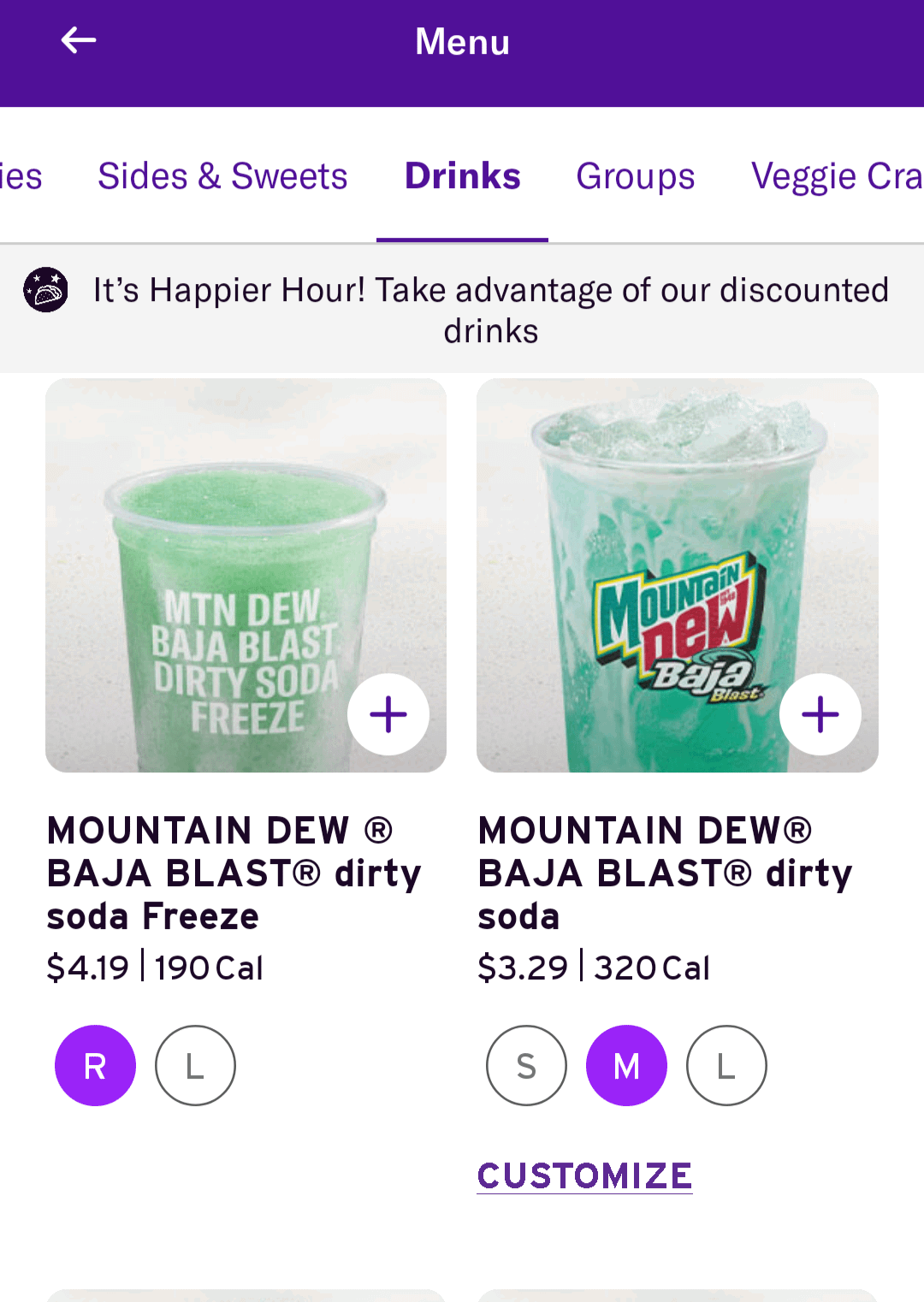 They just changed how happier hour works on the app. It now works like redeeming a reward where the discount isn’t taken off till checkout. Just add your usual happier hour size drink(usually M) to your cart and when you go to pay your final total should reflect the happier hour discount.