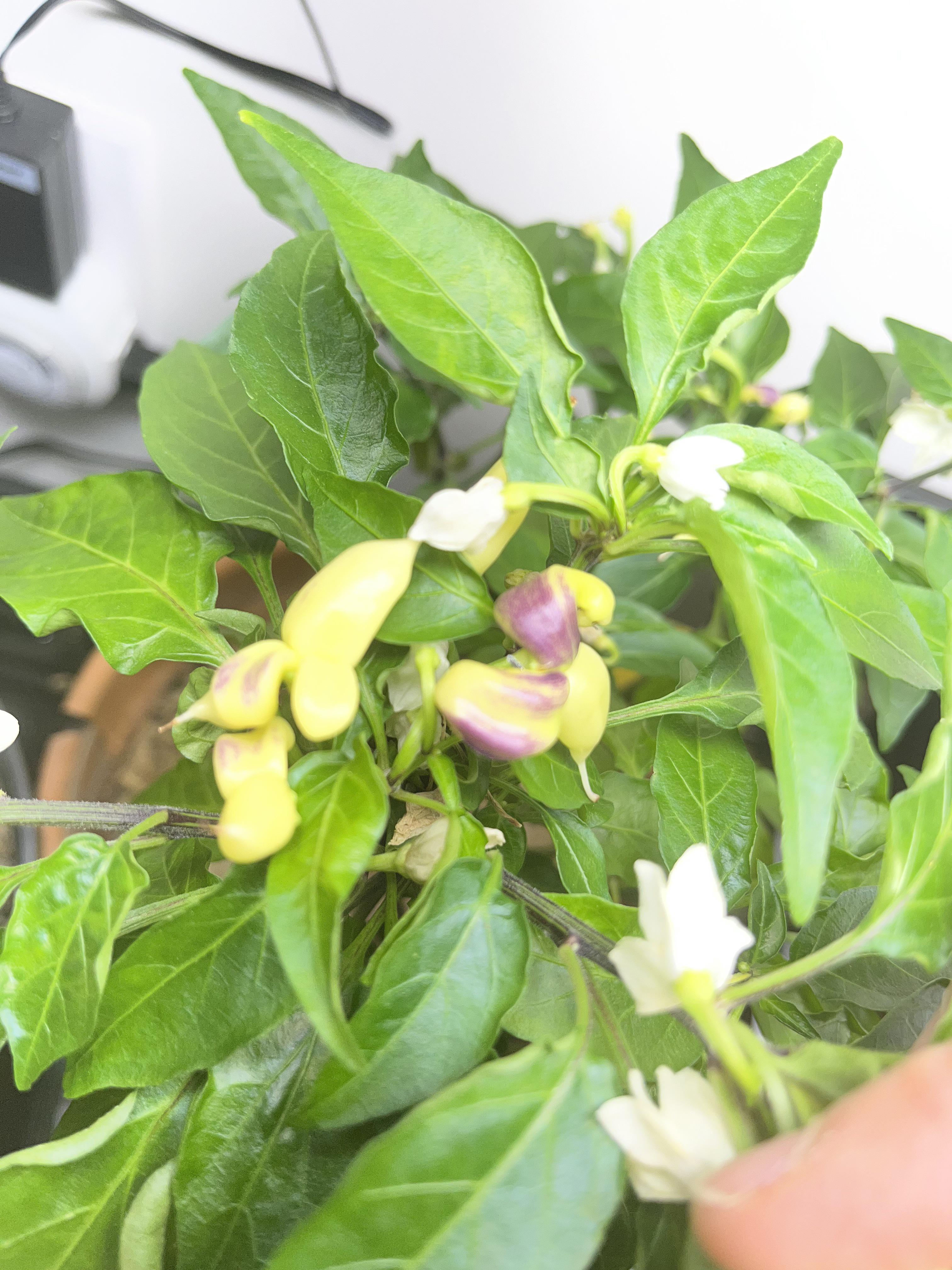One of the abnormal ones is the KS White Thai, which I thoroughly enjoyed. It normally forms bunches of small, straight, and white Thai chili peppers. Now, however the first several peppers have grown curved and are split into what looks like 2-3 peppers fused together.