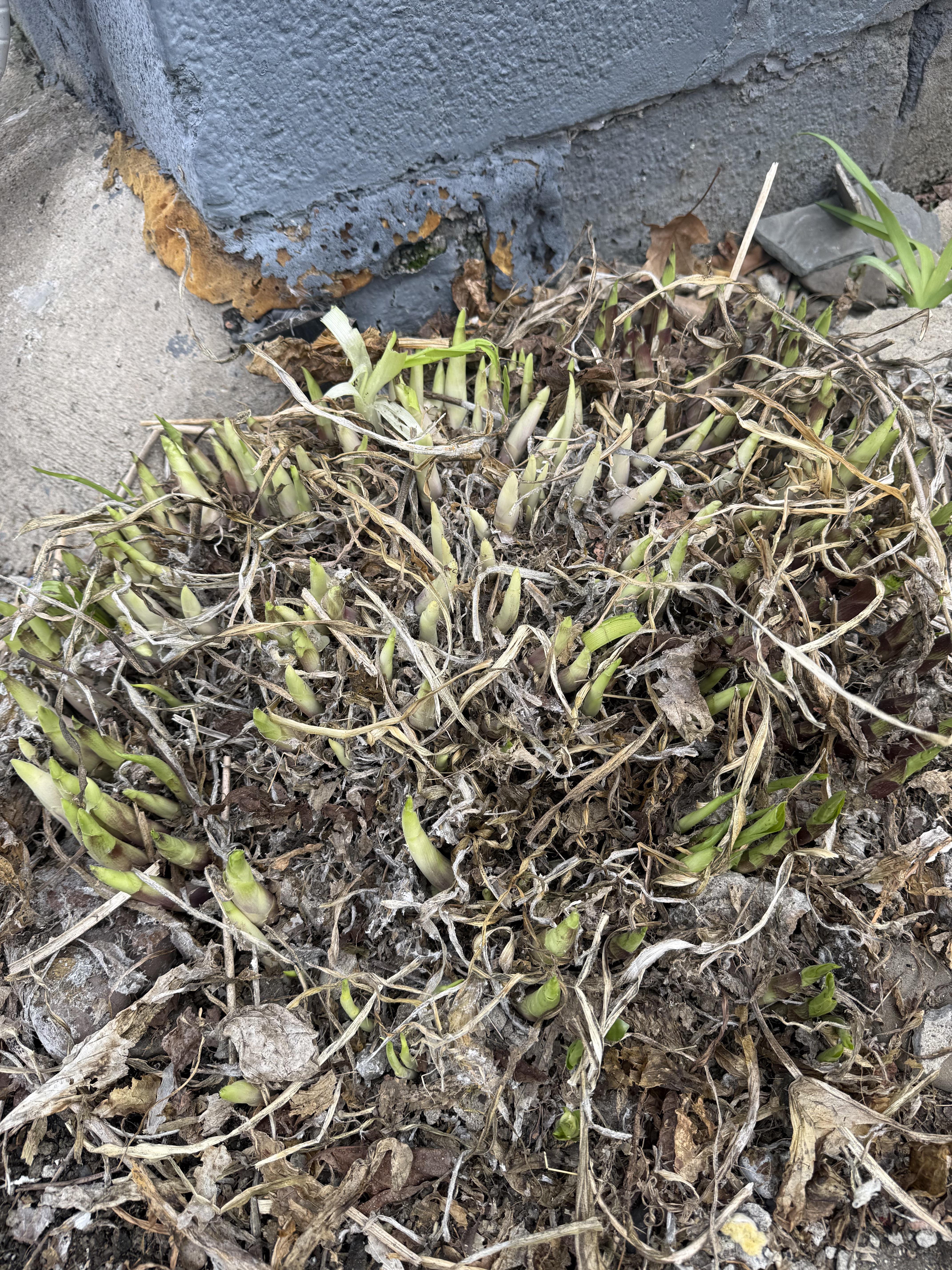 Hosta. Give it a week and you’ll see big variegated leaves. Leave it.