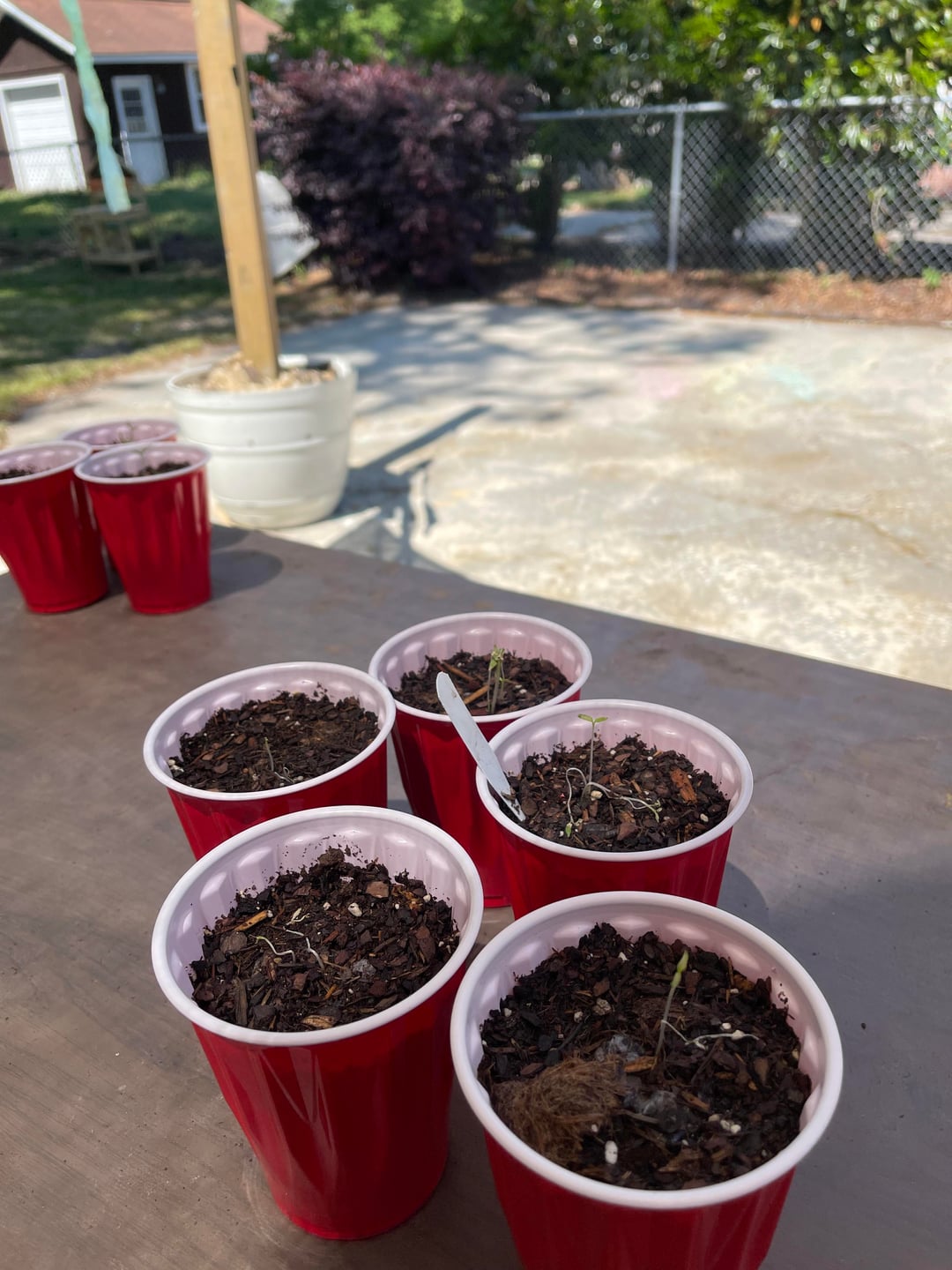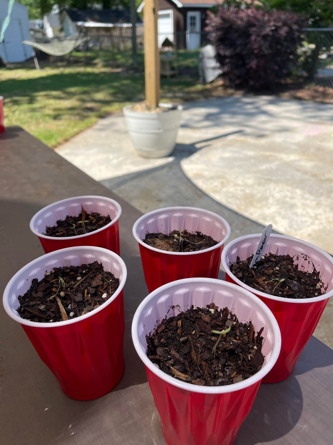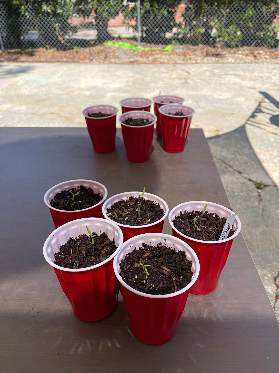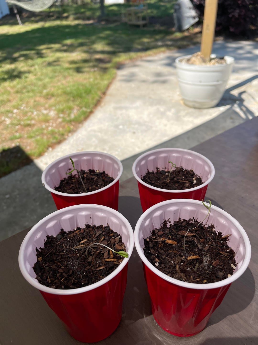 Hey all, not necessarily a novice to this but it’s been a while since I’ve done it. I have 5 of each kind of pepper plant seeded, 22 of 25 sprouted. I moved them to solo cups and kept them indirect sunlight until yesterday when I decided to let them get full sun (not under patio shown) and noticed quick deterioration. Is there anything I can do to reverse or keep these peppers going or am I going to have to start all over?