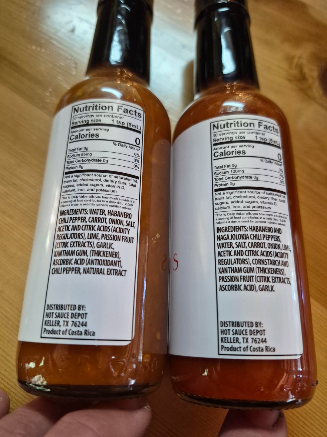but, neither of these tasted right. left tasted like habanero, right tasted like ghost peppers. label says the math they did in Texas is:
