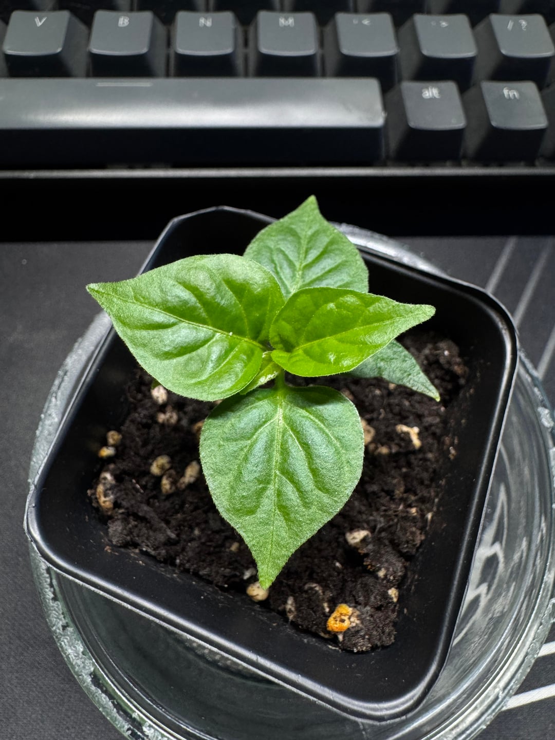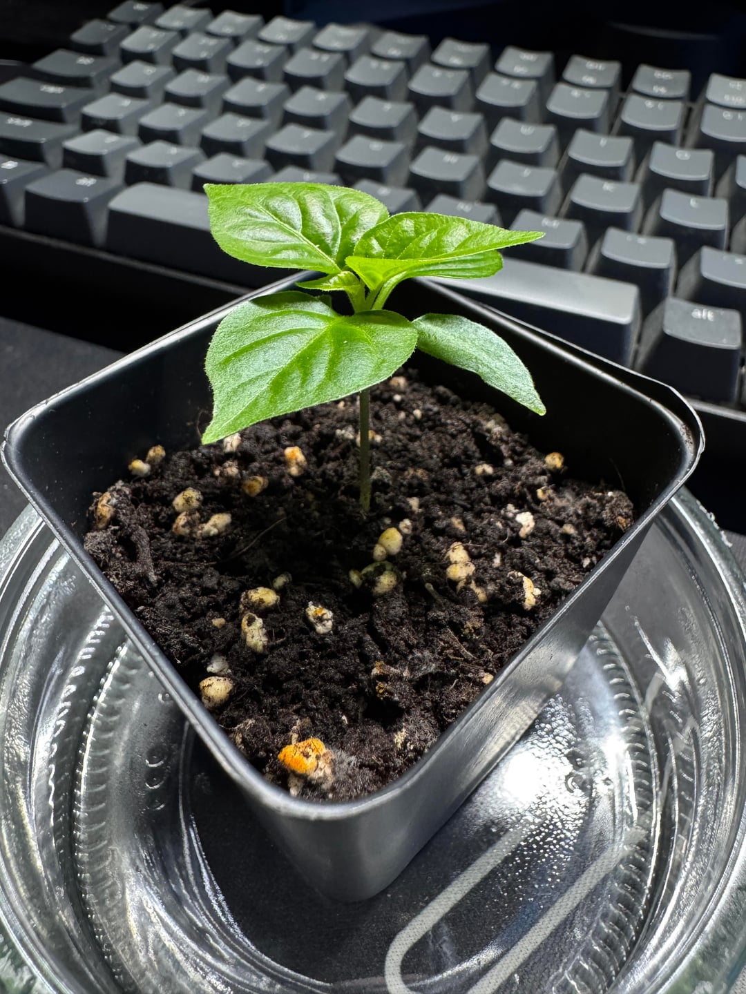 Hi everyone! It’s my first time having a pepper plant. It is a Carolina Reaper (I hope), currently growing under a cheap grow light (see 3rd pic). I’ve been using Formulex by Growth Technology to feed it and I will switch soon to Chilli&Pepper Focus (see 4th pic). Any advice would be amazing. Should I be worried that the plant is super compact and short? Should I already repot it?